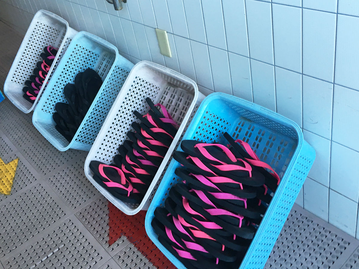 男女別の脱衣所で着替えて〜(私たちはホテルから浴衣で来たので荷物を置くだけ、無料のコインロッカーあり)