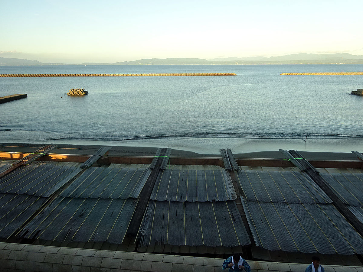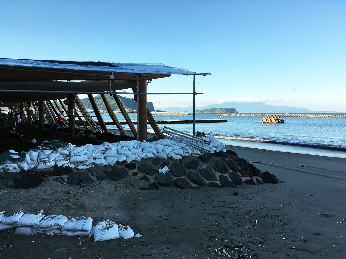 上から見た感じ。簡易の屋根で覆われたスペースが砂むし場。