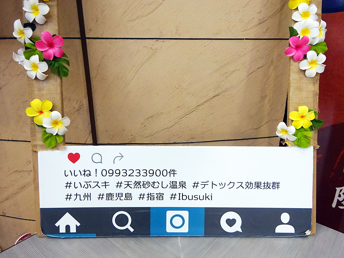 脱衣所手前にはインスタのフォトフレームもございます。記念にどうぞ。