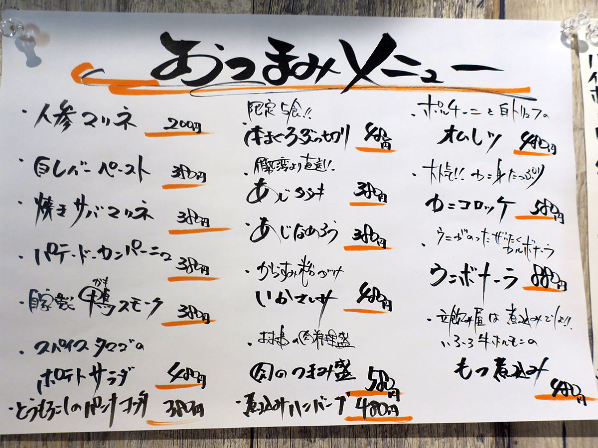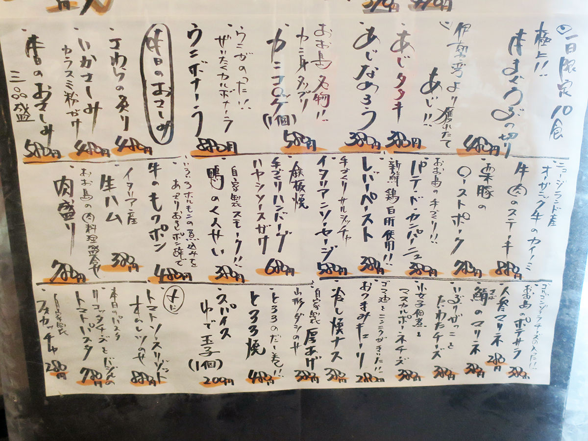 メニューは手元や壁の用紙にて。もうココもスゴイわ。見るだけでヨダレ出ちゃうラインナップ!(詳細は記事最下部にてどうぞ)
