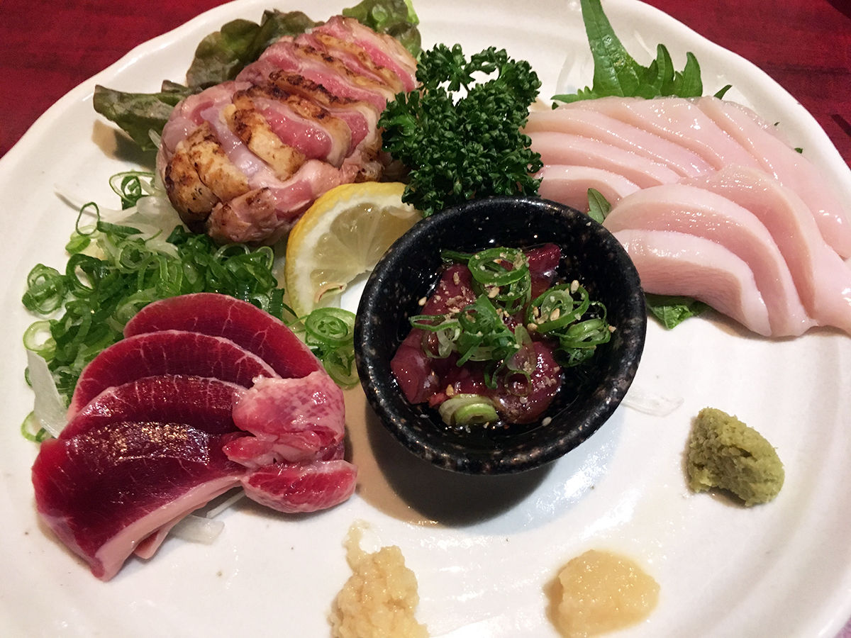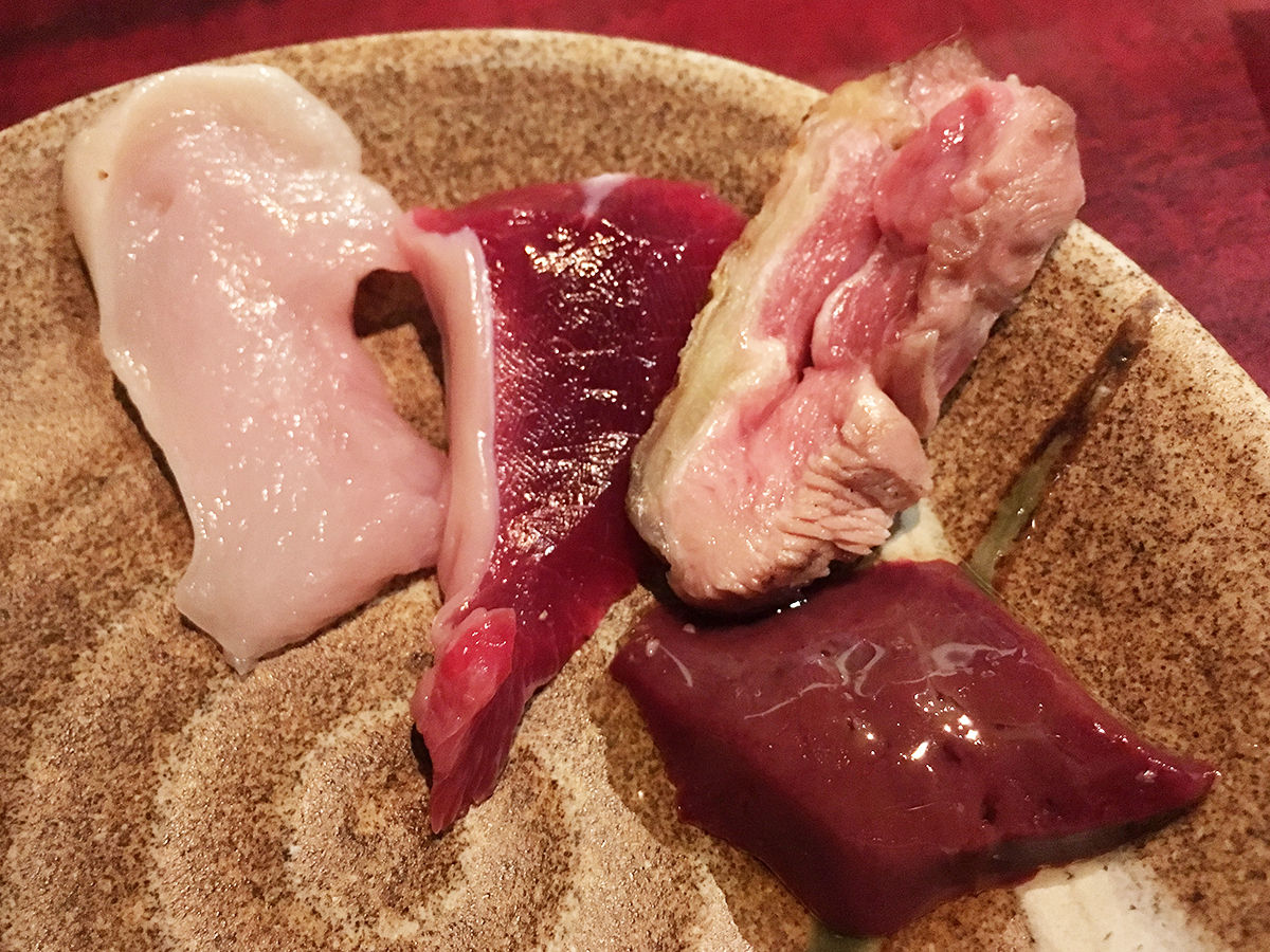相変わらず美しい!内容はちょいちょい変わるのかな?以前とはちょびっとだけ違うけど。この日は、ずり、ももタタキ、むね、肝の4種。