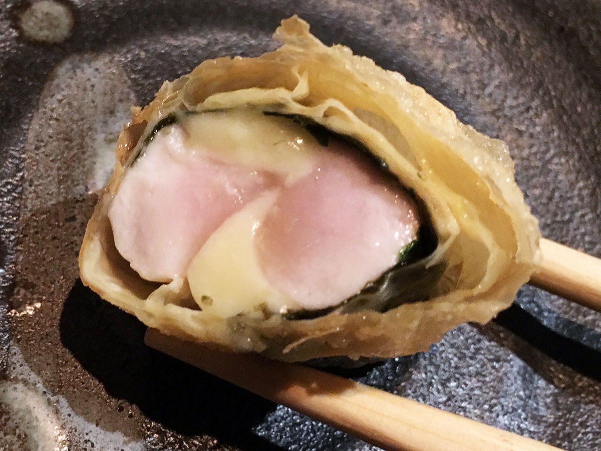 地頭鶏ささみとチーズの湯葉巻き揚¥630
