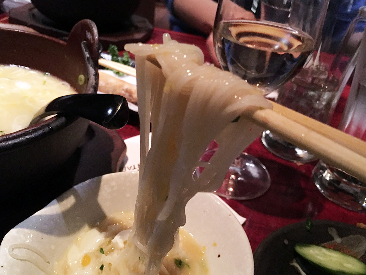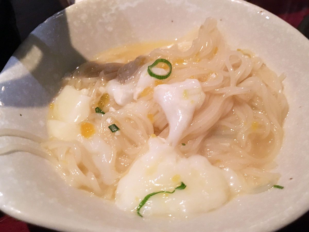 鶏の旨味しっかり、でもあっさり。ラーメンとかうどんとは違うそのしなやかさ、軽い口当たり喉越しが、シメにぴったり。