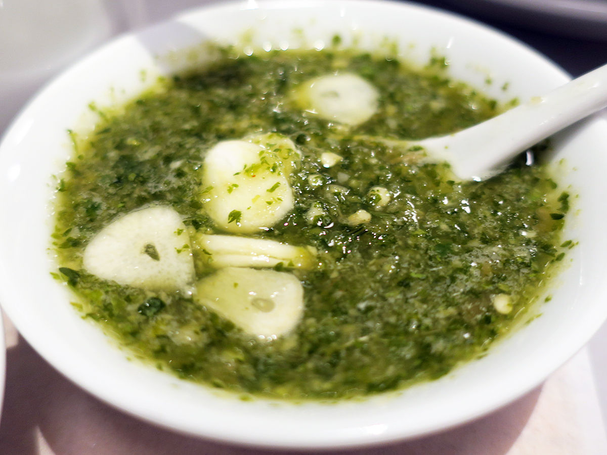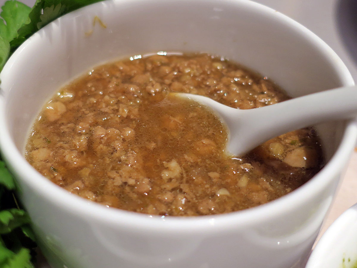 表面カリサクッと中しっとりほこっとサーモンにバジル。ここまではイタリアンみたいだけど、タイのニンニクがっつり、辛味もしっかり、さらに添えられるナンプラープリックでタイ仕様になるわけ。でもこのタイプのガパオは初めてで新鮮でした。あっさりクリアなスープと共に。