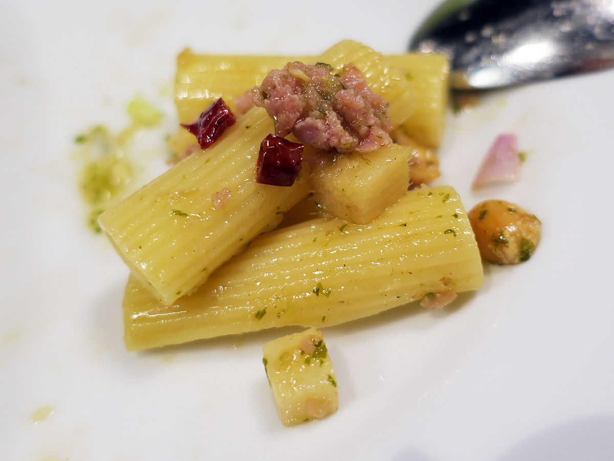 ネームを食べる時同様、刻んだ生姜やガーリック・唐辛子・オニオン・ナッツなどと和えたリガトーニってわけね。