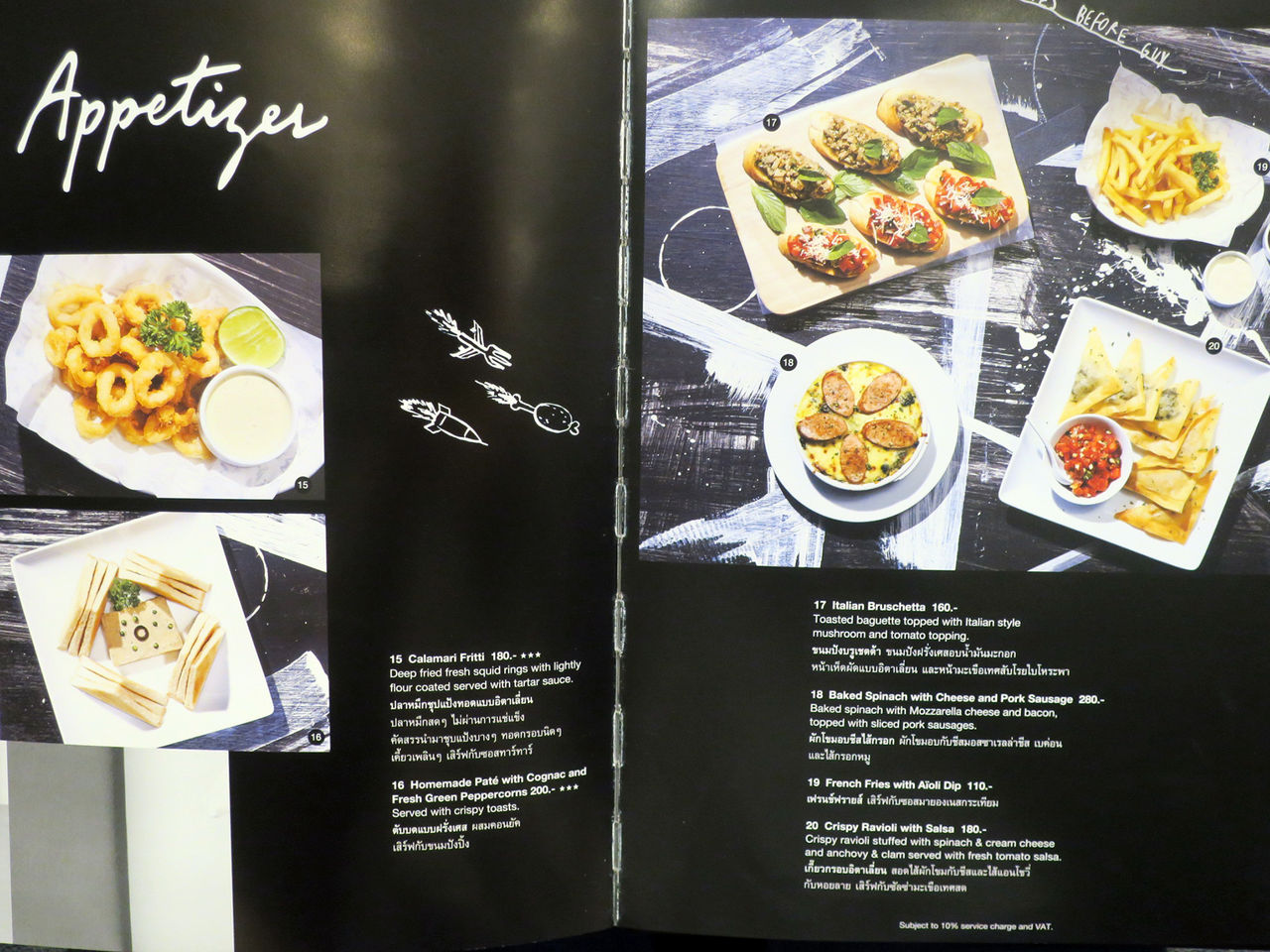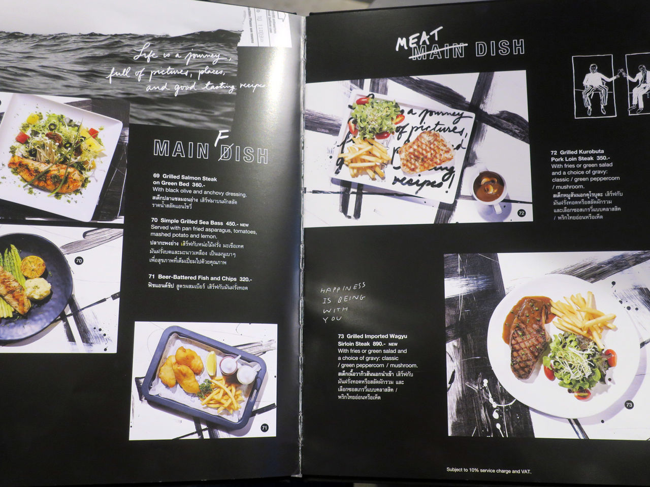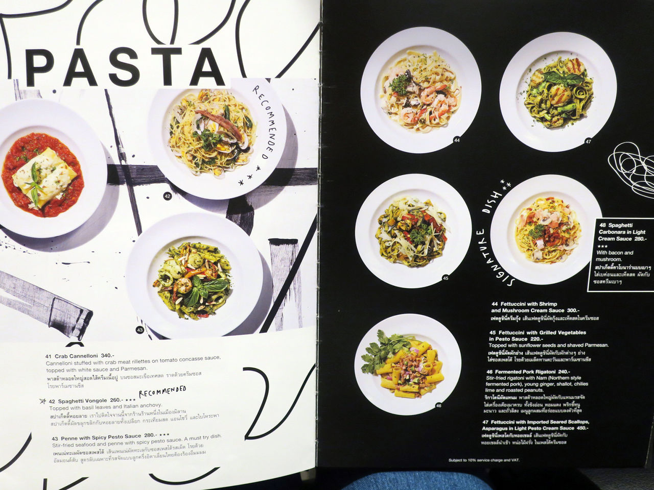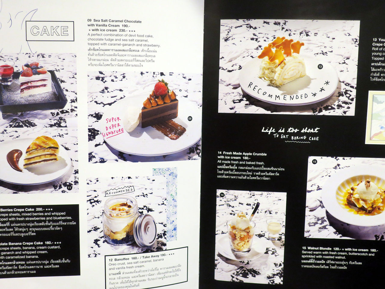 メニューは分厚くて重たい(笑)ブックにて。写真入りでメニューまでオシャレ抜かりなし。