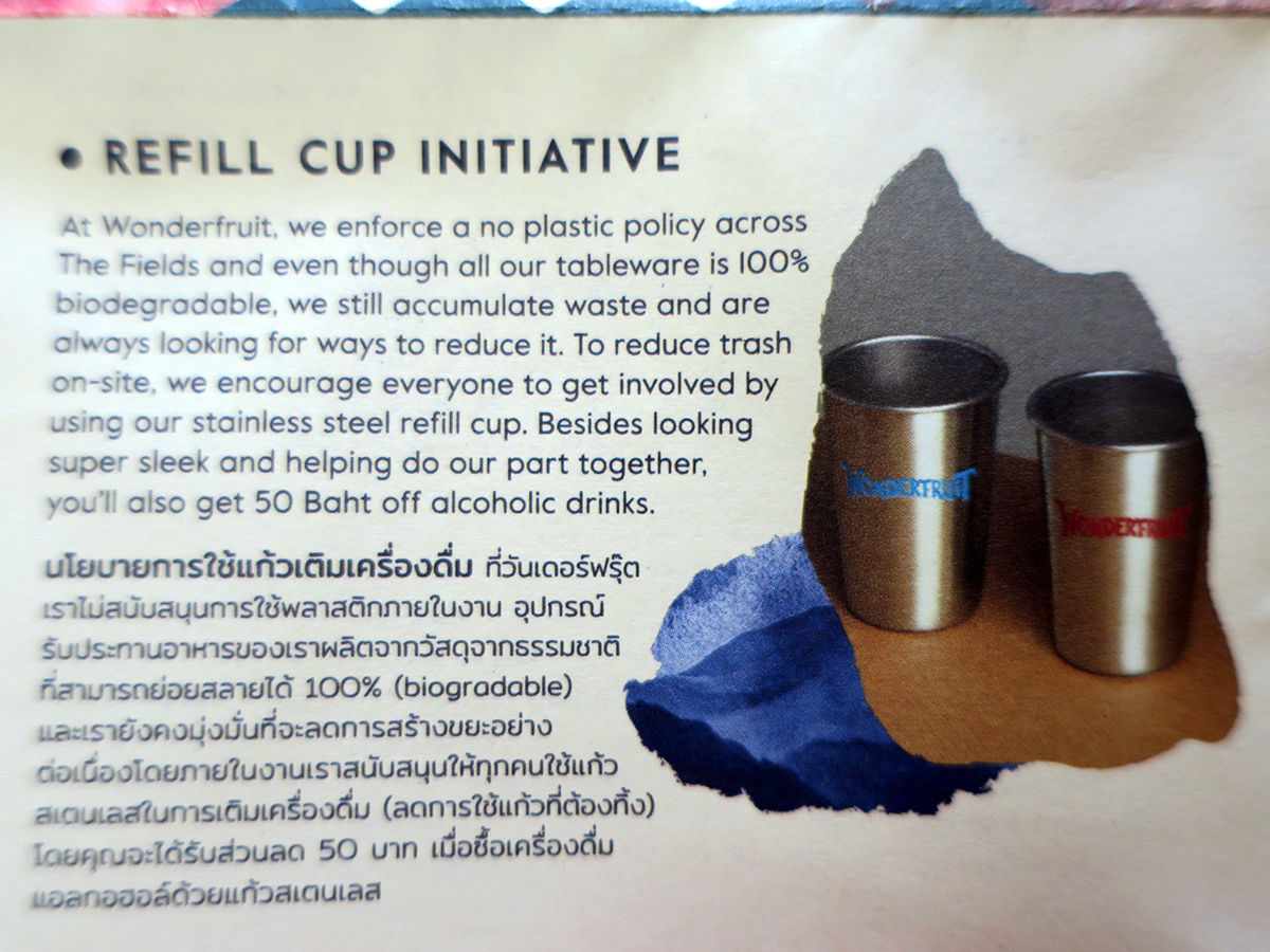 ドリンクは、あらかじめオリジナルのリフィルカップを購入しておくと、各50バーツオフになりました。フェスの記念に持って帰ってまた使えるし、コレはなかなか良いアイディア。