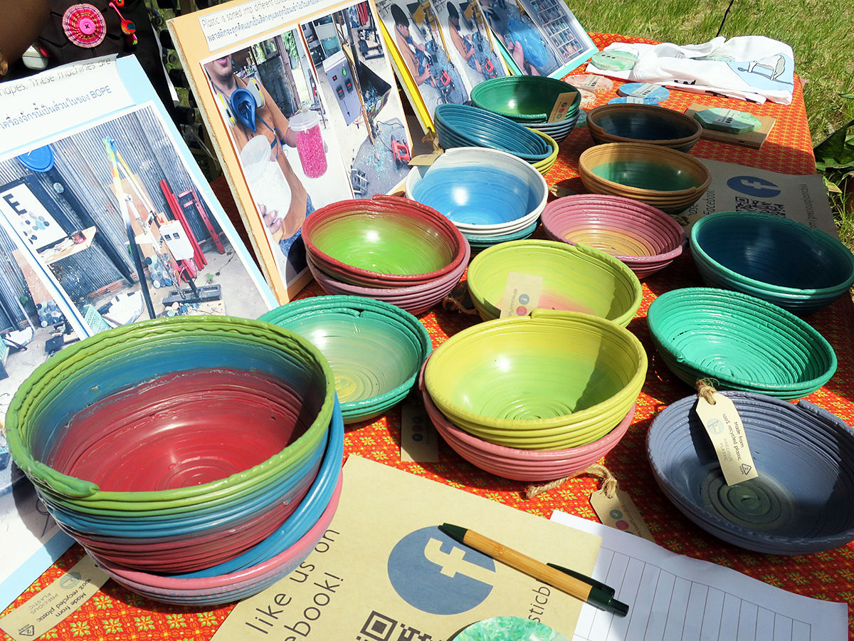 ココでもエコや自然を考慮、フードのお皿やフォークもリサイクル可能なエコもの。設置されるゴミ箱もきちんと分類され、「ちゃんと分けて捨てよっと」と思わされるアートなゴミ箱になっていました。