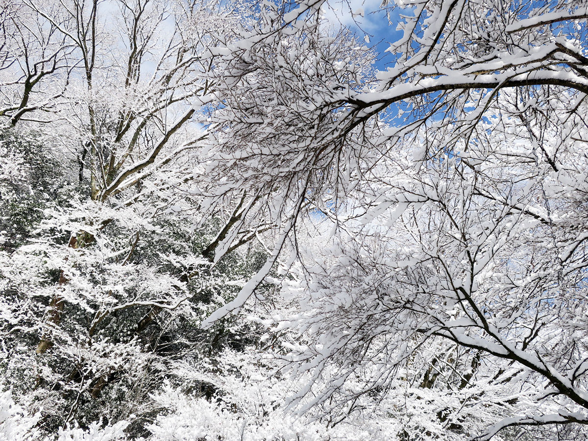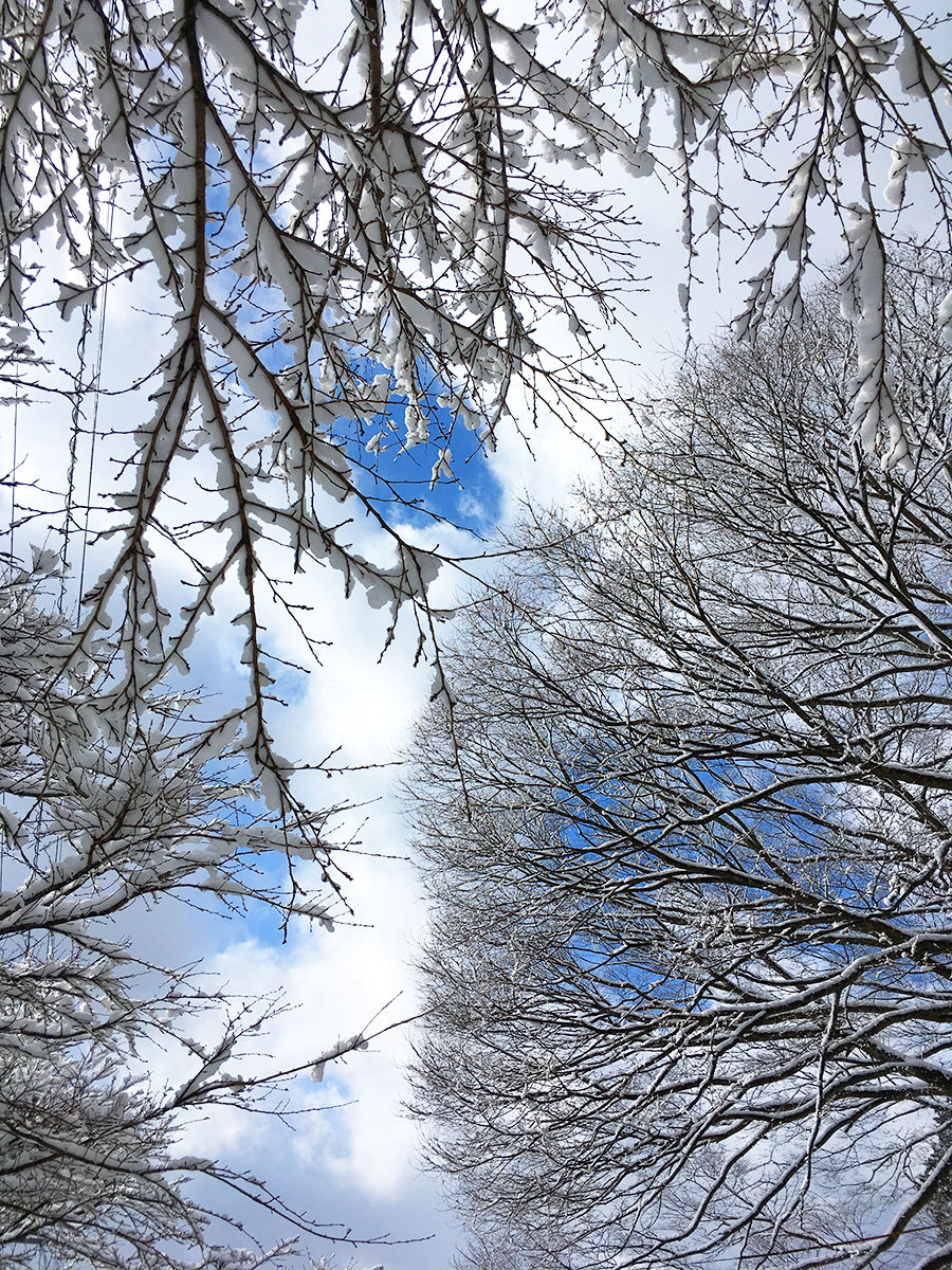 冬の山の天気は変わりやすい。雪が止み青空も再び。空の青と雪の白が映える〜