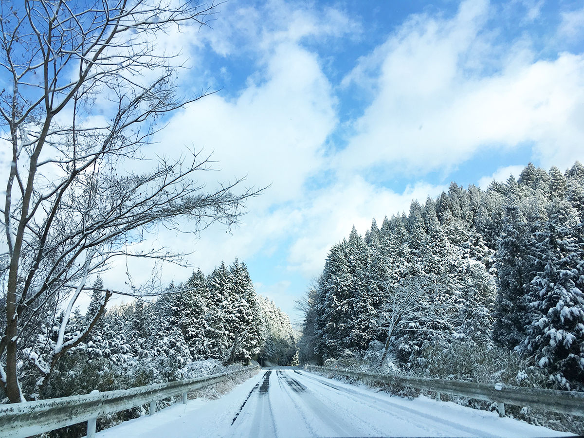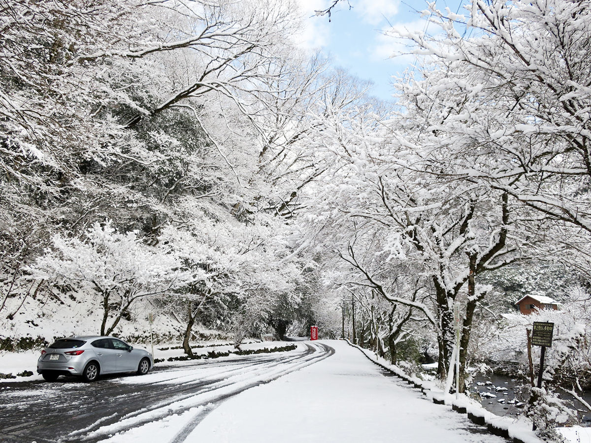 余談:大分でも流石にこの雪は珍しいらしく、この日、他県だかどっかから来た人たちは、車をそれなりに準備していない。ゆえ、道中はかつてない混乱状態!通る山道至るところで車がスリップ、停車、横転するパニックアクシデントぶり><万が一に備えてスタットレスタイヤにしていたうちらは、ほんまに助かりました!