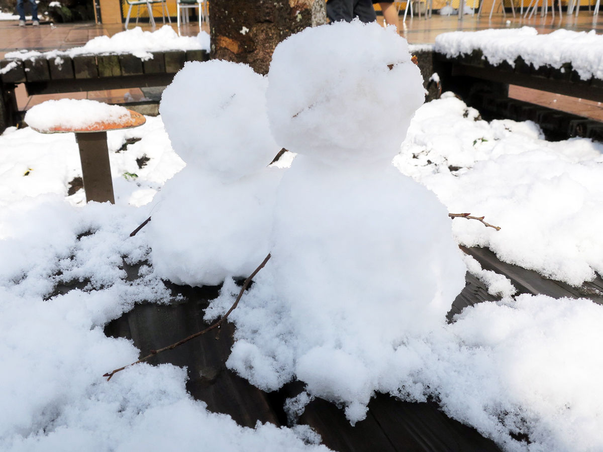 白く染まる木々に建物の屋根。雪だるまも作れるほど積もったんだ!