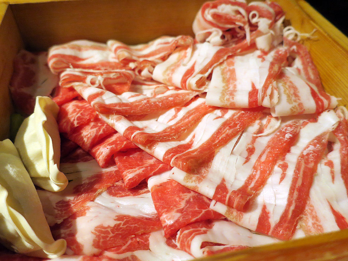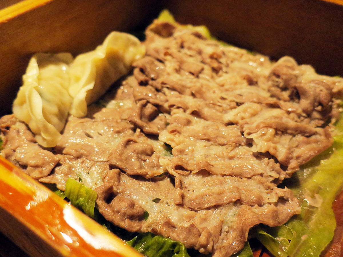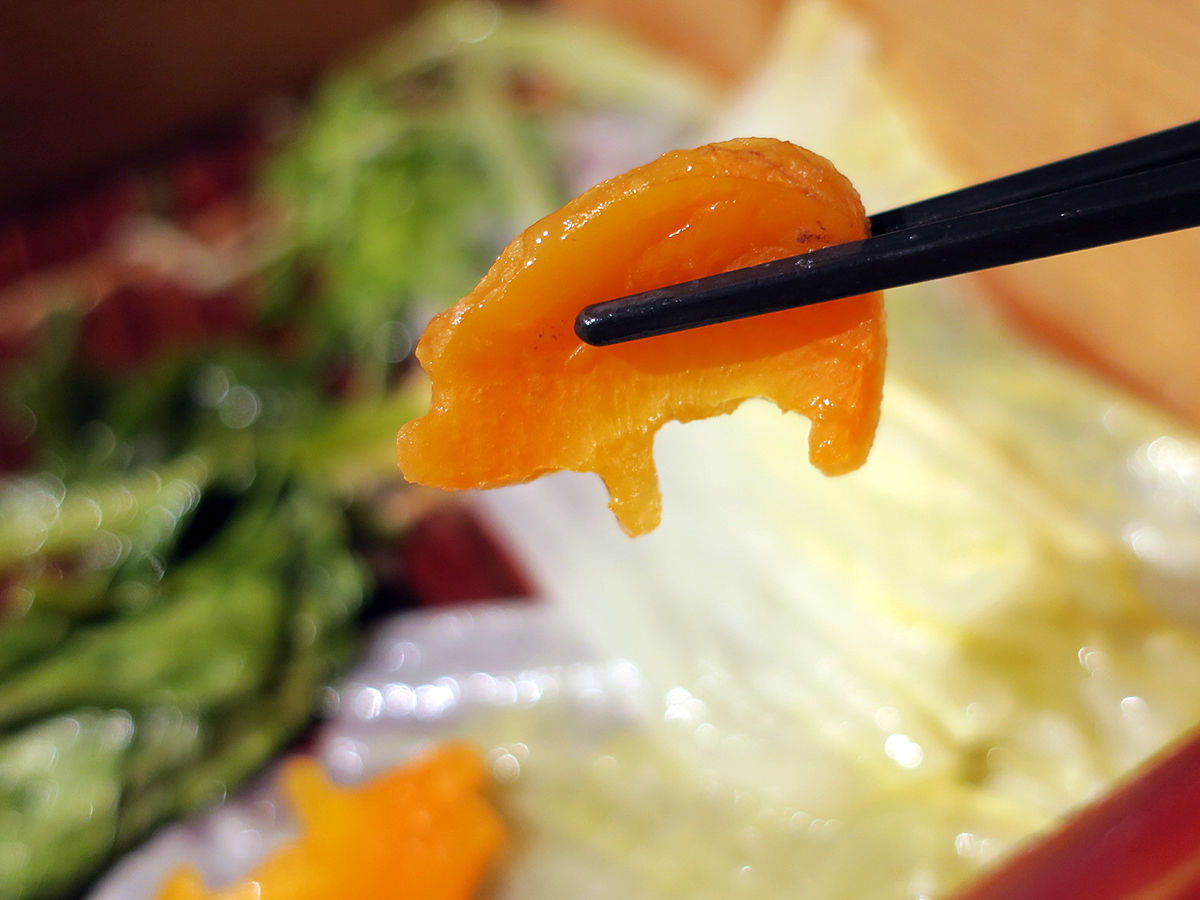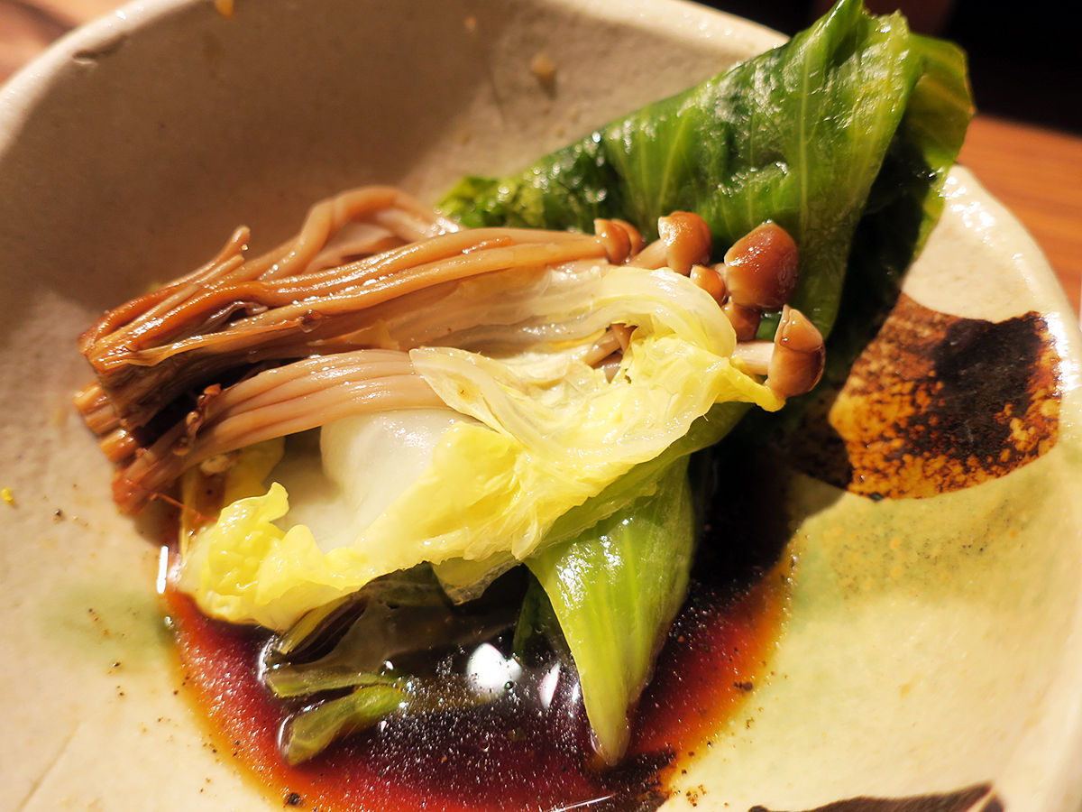 ジューシィなロースに、やらかくてとろけるバラ。余分な脂が落ちてもなお甘い。しゃぶしゃぶより水っぽさがなくて、蒸しの方がより旨味を感じられた気がする。