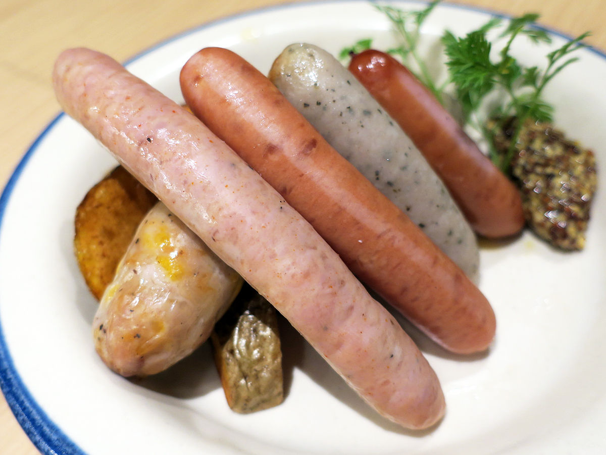 イベリコ豚ソーセージ、バジルソーセージ、粗挽きウインナーなど。