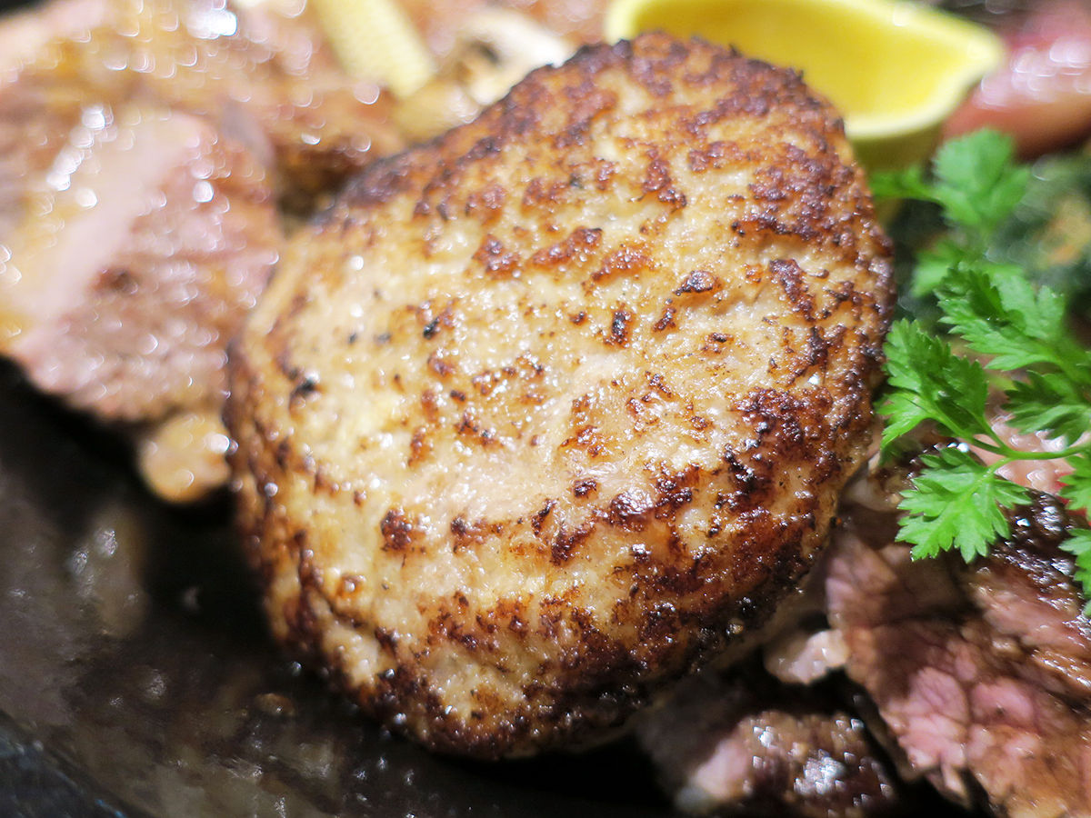 調合・コネ・焼き、全てにこだわったというハンバーグがはさすがの旨さ。めっちゃやらか!めっちゃジューシィ!豚100%ならでは。これは白飯を欲する><