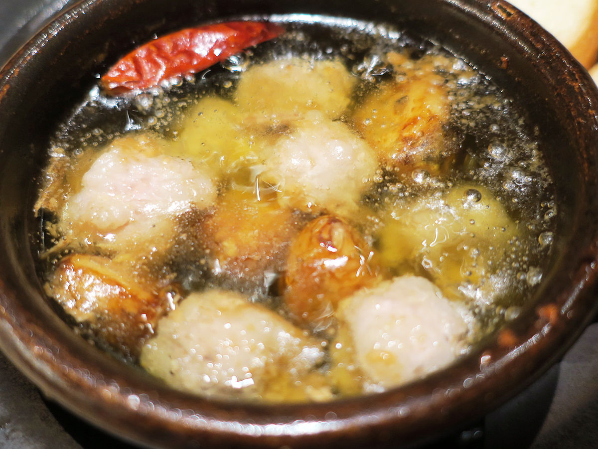 ゴロゴロにんにくと和牛ホルモンのアヒージョ¥680