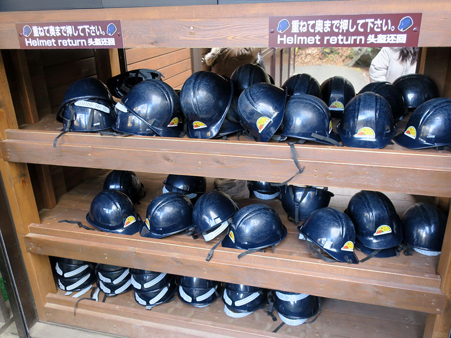 洞窟に入る際には常備のヘルメット装着で。(いろんな人がかぶるから結構臭い。爆)