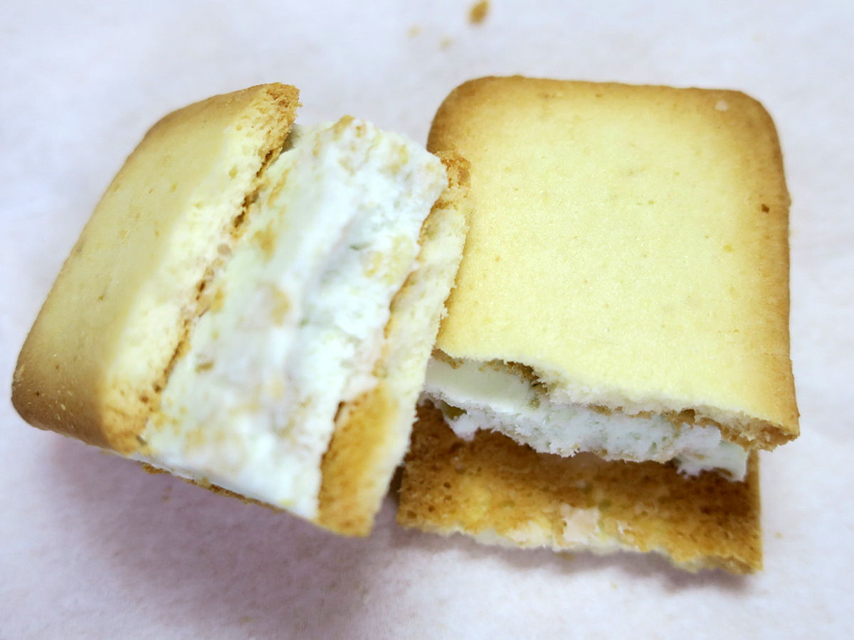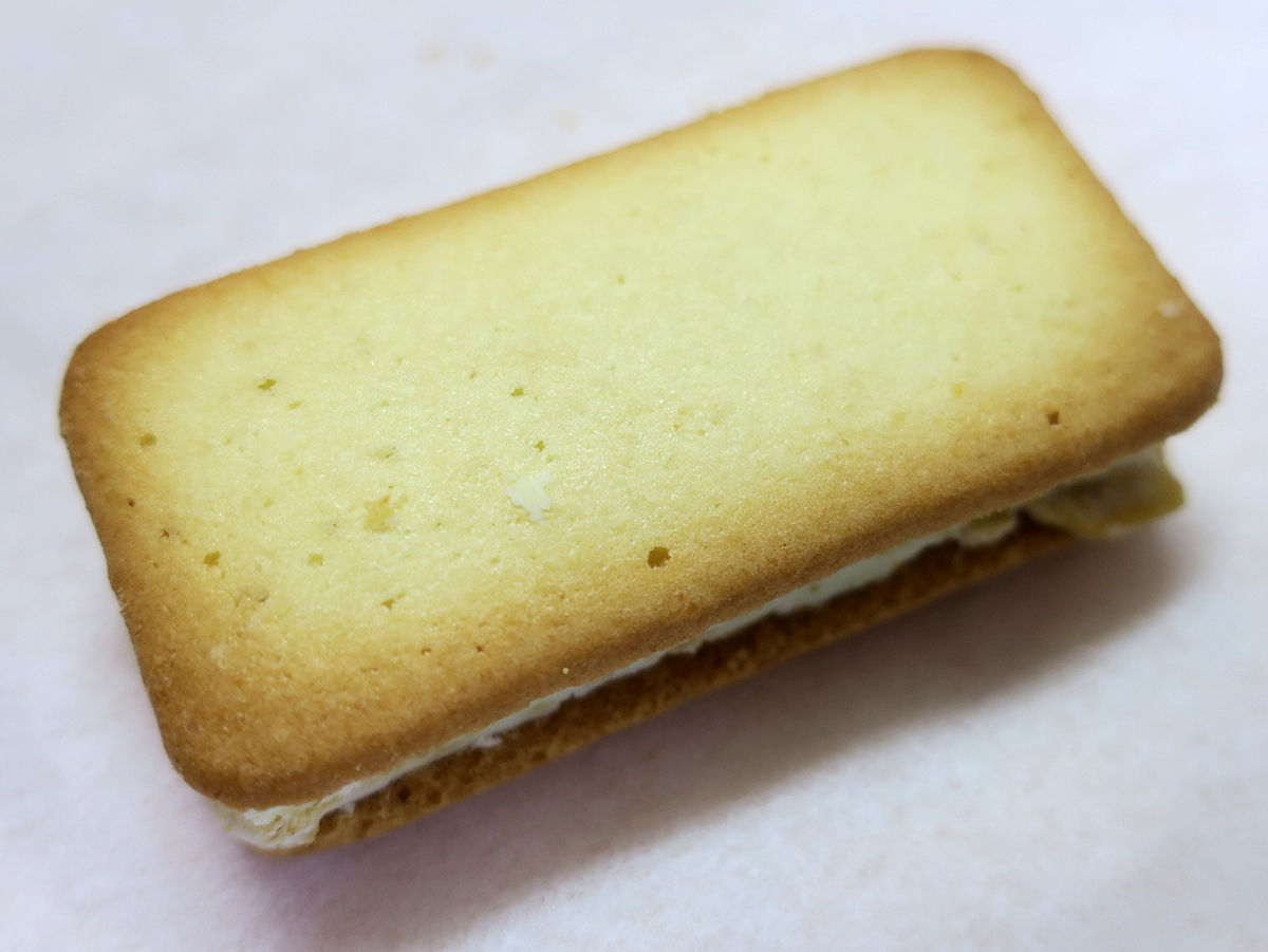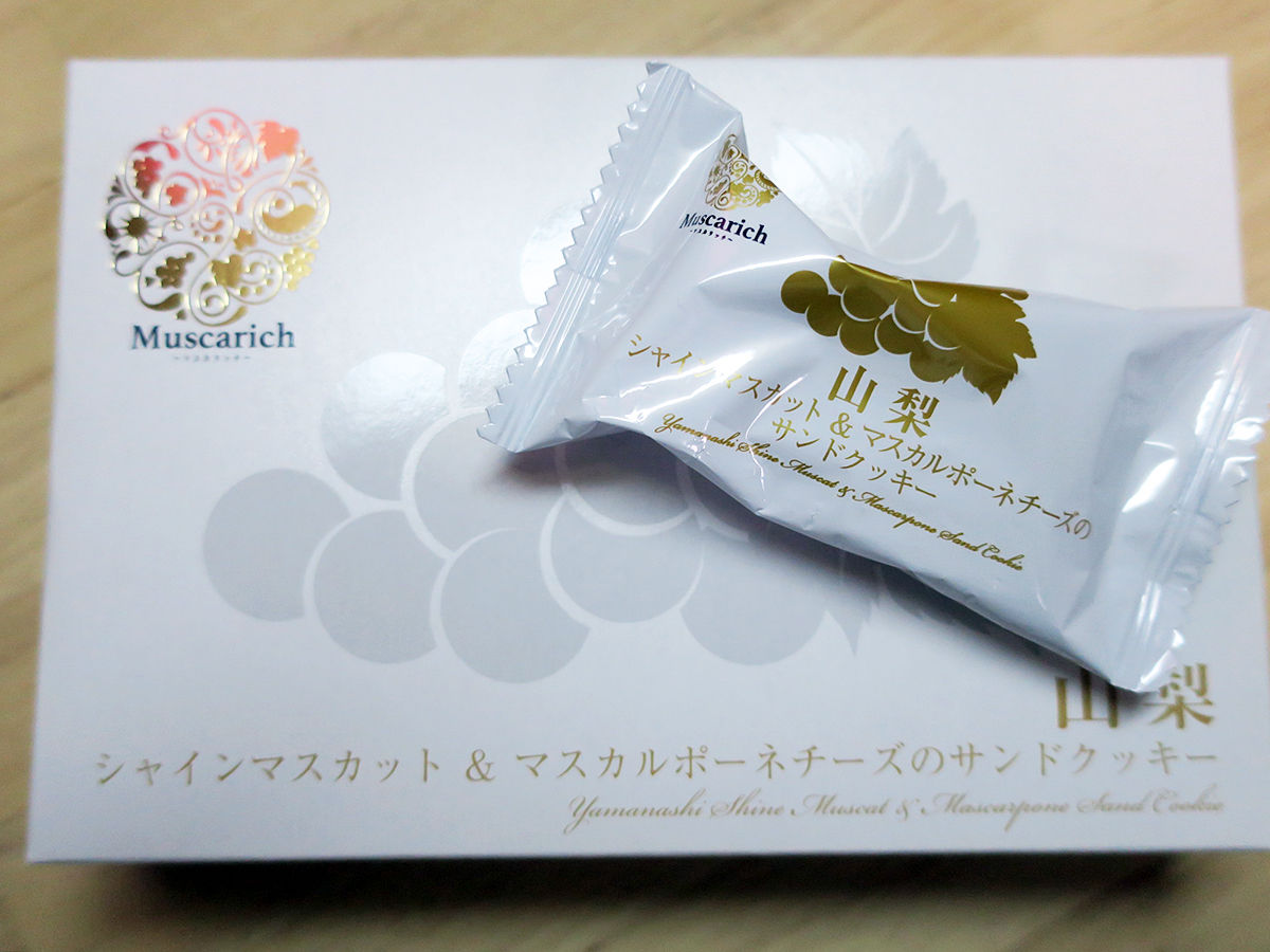 ラングドシャの分厚いみたいなクッキー生地に、ジャリリとしたフィリングがこってり濃厚さとふわり香るマスカットのさわやかさ。意外とがっつり甘い。でもおいしい。でも甘い(笑)ちょっぴり高級感もあります。