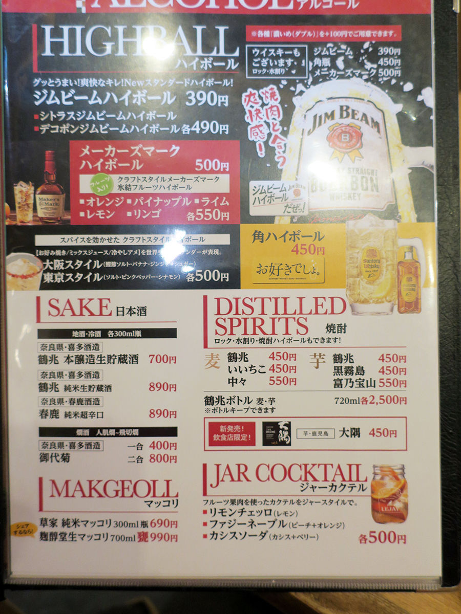 ジムビームハイボール¥390、角ハイボール¥450