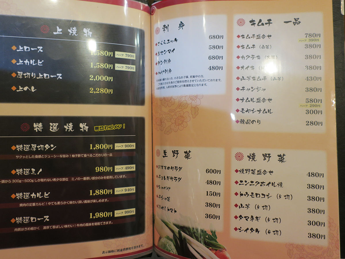 食べ放題が人気のようだけど、食べホの肉は既に品切れがあるとのことだし、アラカルトの方が良い肉のラインナップも多そうなのでアラカルトオーダーで。入口レジにはその日のお肉の個体識別番号も記され安心。(メニュー詳細は記事最下部にてどうぞ)