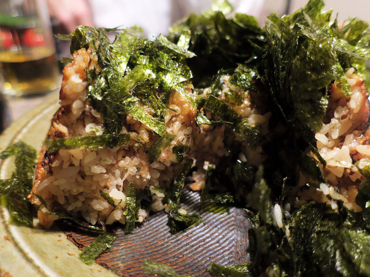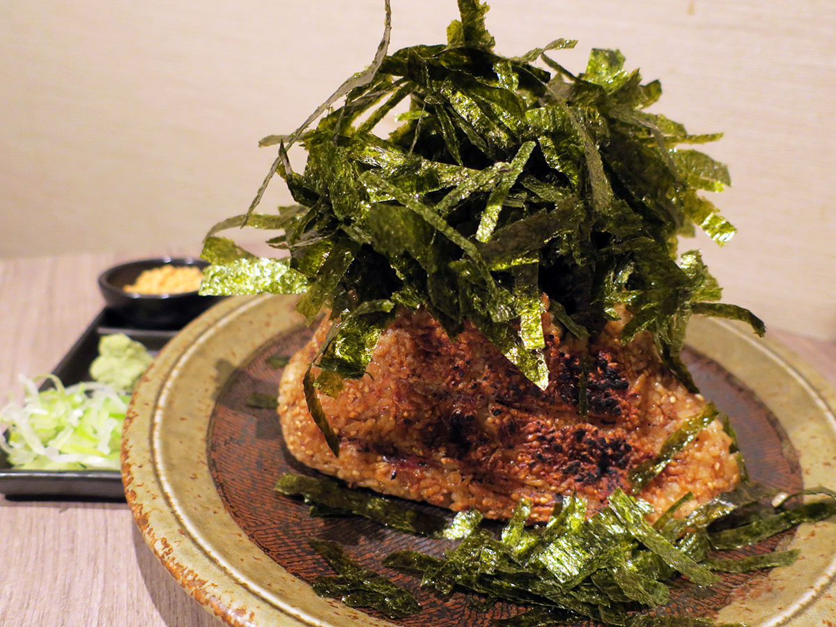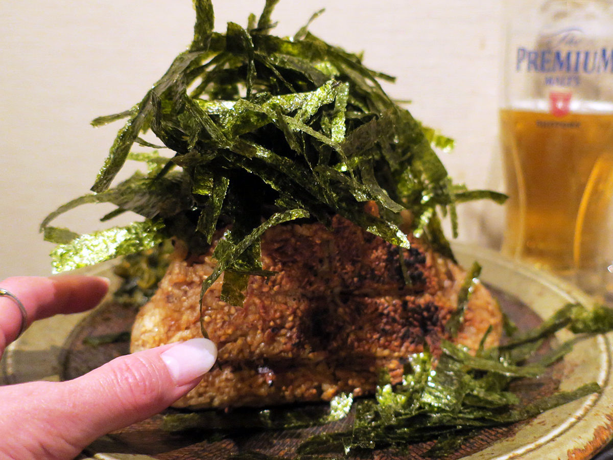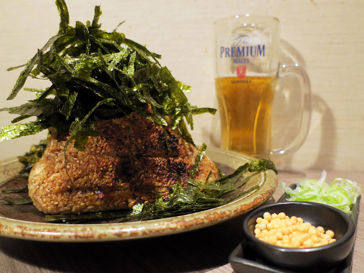 シメ炭水化物はお店の名物、超巨大な焼おにぎり!