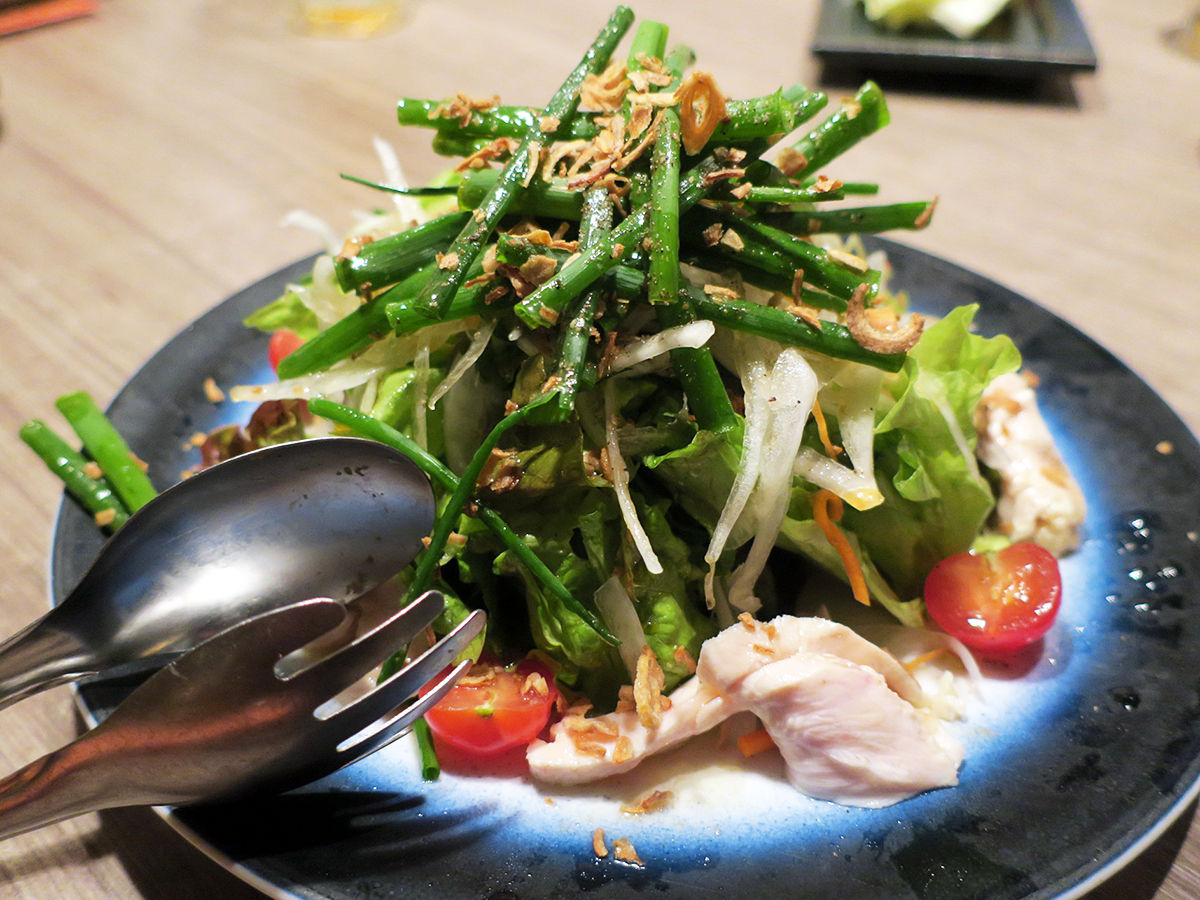 シャッキシャキたっぷりネギや玉ねぎ、葉野菜にしっとりチキン。フライドオニオンも良いアクセント。