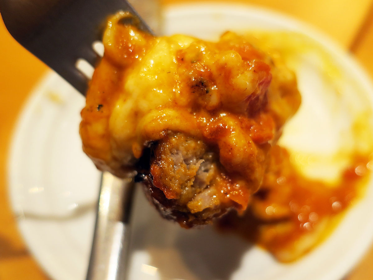 肉の旨味ギュギュッのソースに、チーズは風味を残してふわっと溶けちゃう!これも絶品。