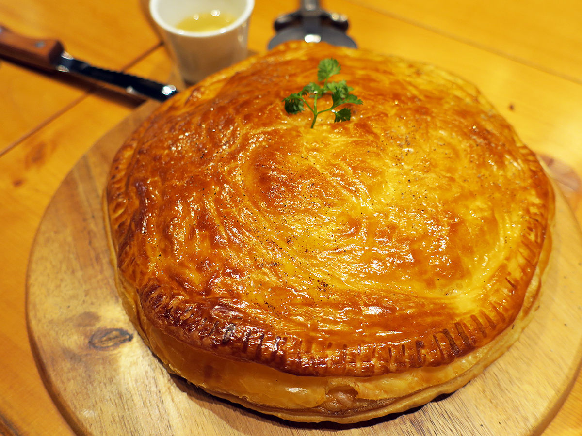 サックサクサクのとろ〜り!ウマ!ママで良し、ブラックペッパー良し。そして、添えられるハチミツをかけてまた良し。ピザだけどパイ生地が軽くっておつまみ感覚でいける。