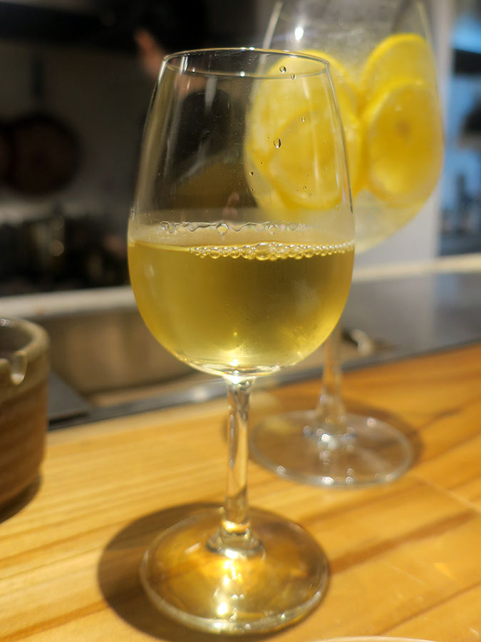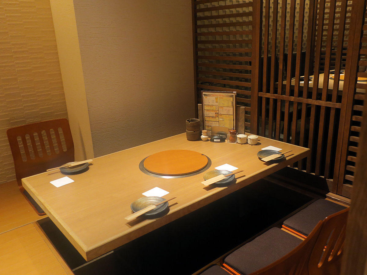 店内は調理場向かいのカウンターと裏手のテーブルと掘りごたつ席。外観然り内観然り、スタイリッシュでオトナな雰囲気。