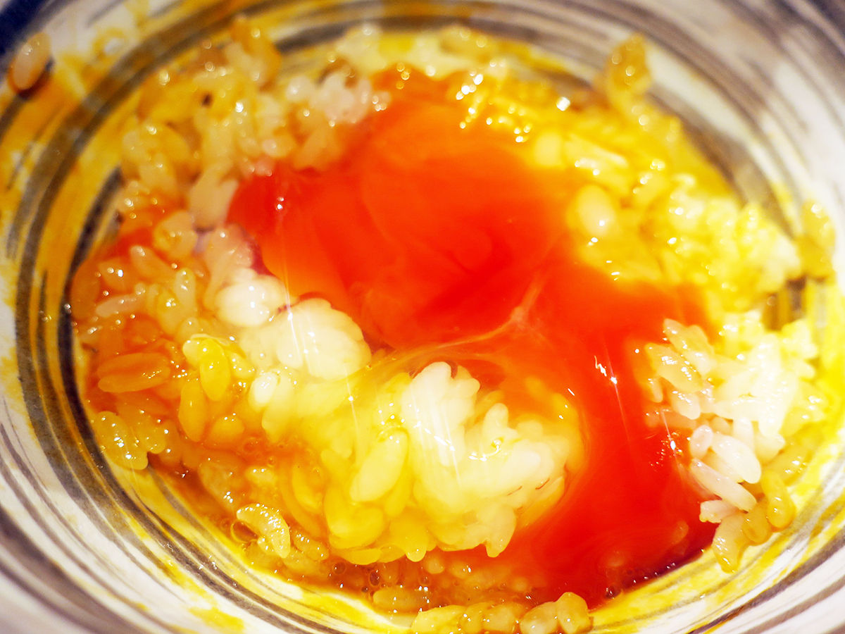 龍の卵の美しきこと!お醤油をちょろりとかけまわしざっくりと掻き回して〜