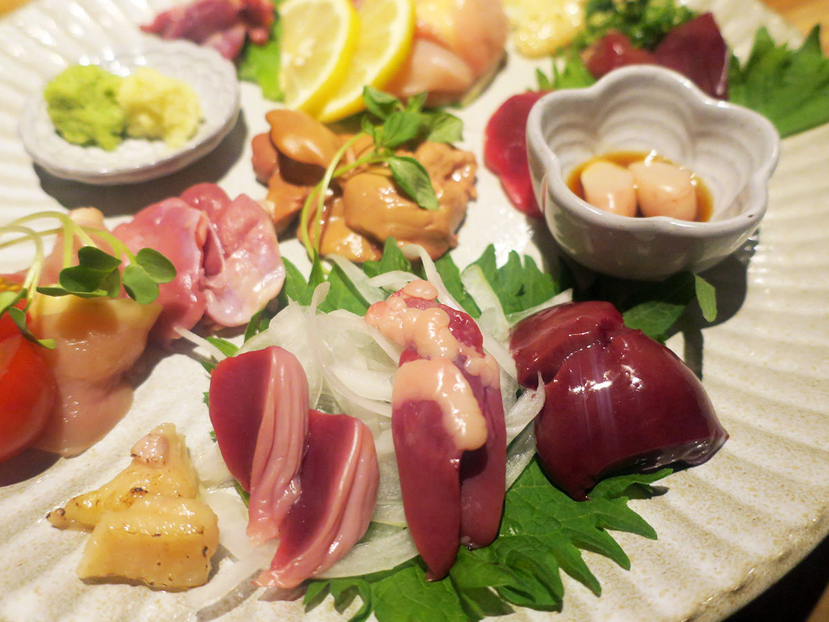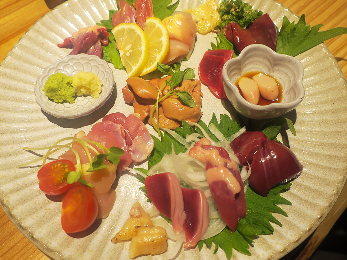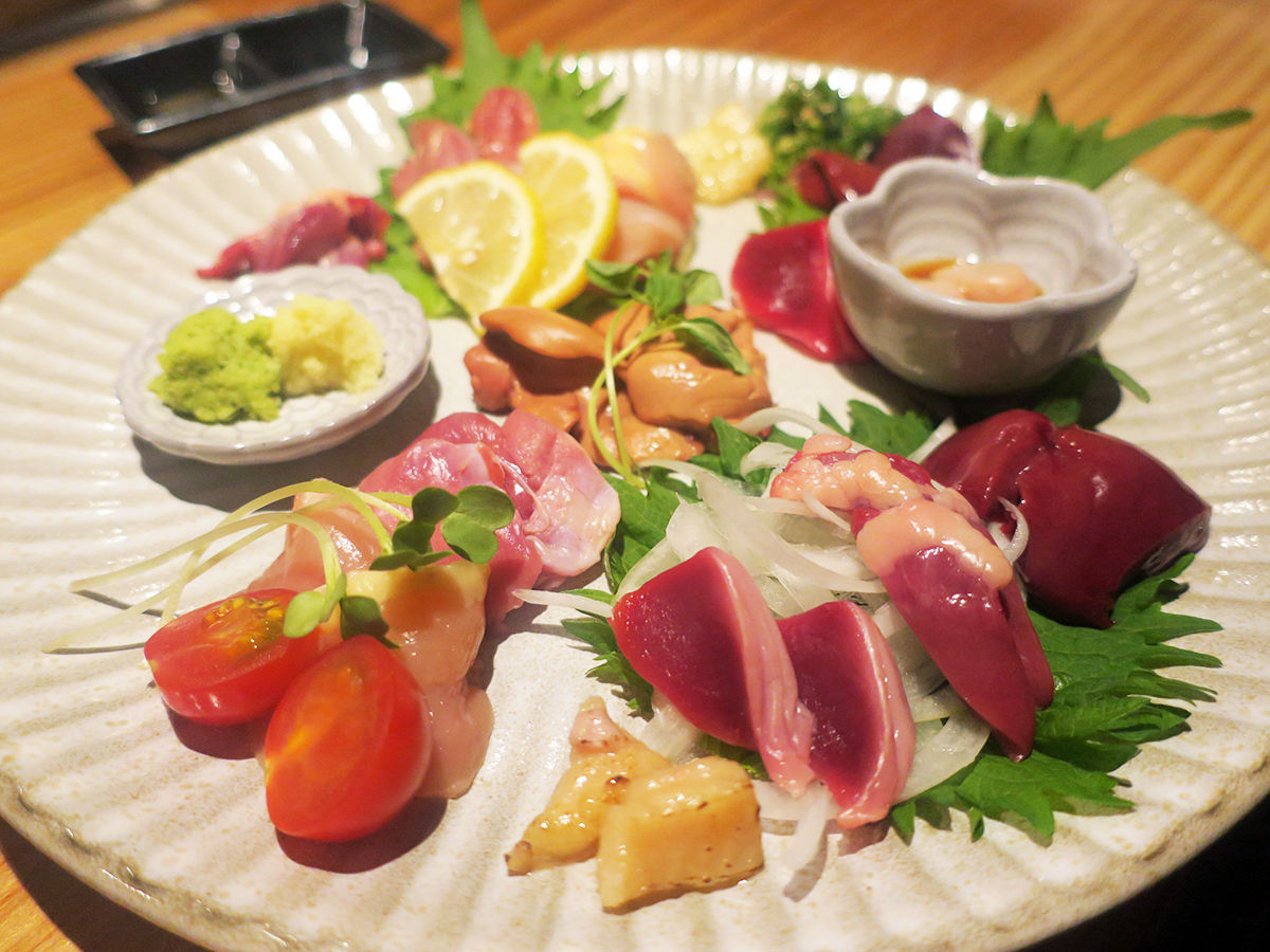 刺身盛合せ¥1380(2人前、写真は2種の鶏を食べ比べで価格は異なります)