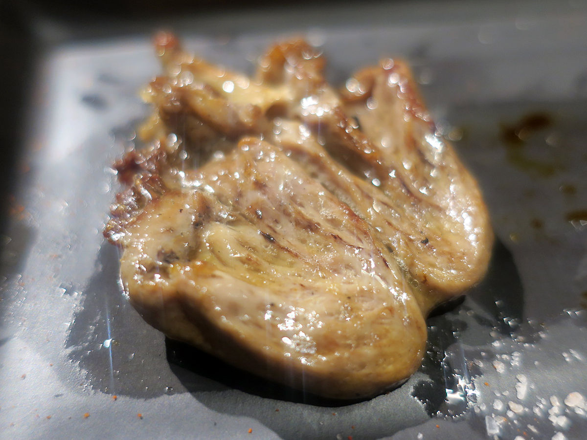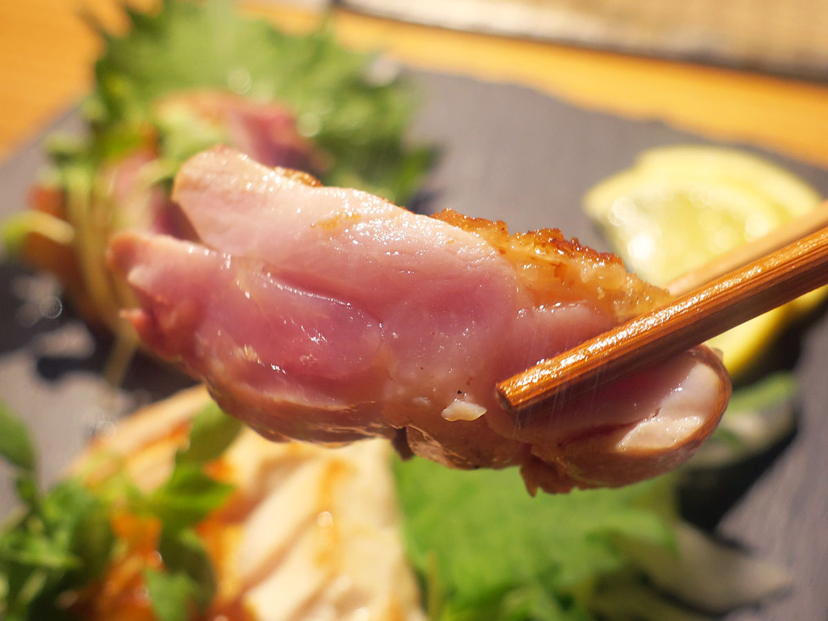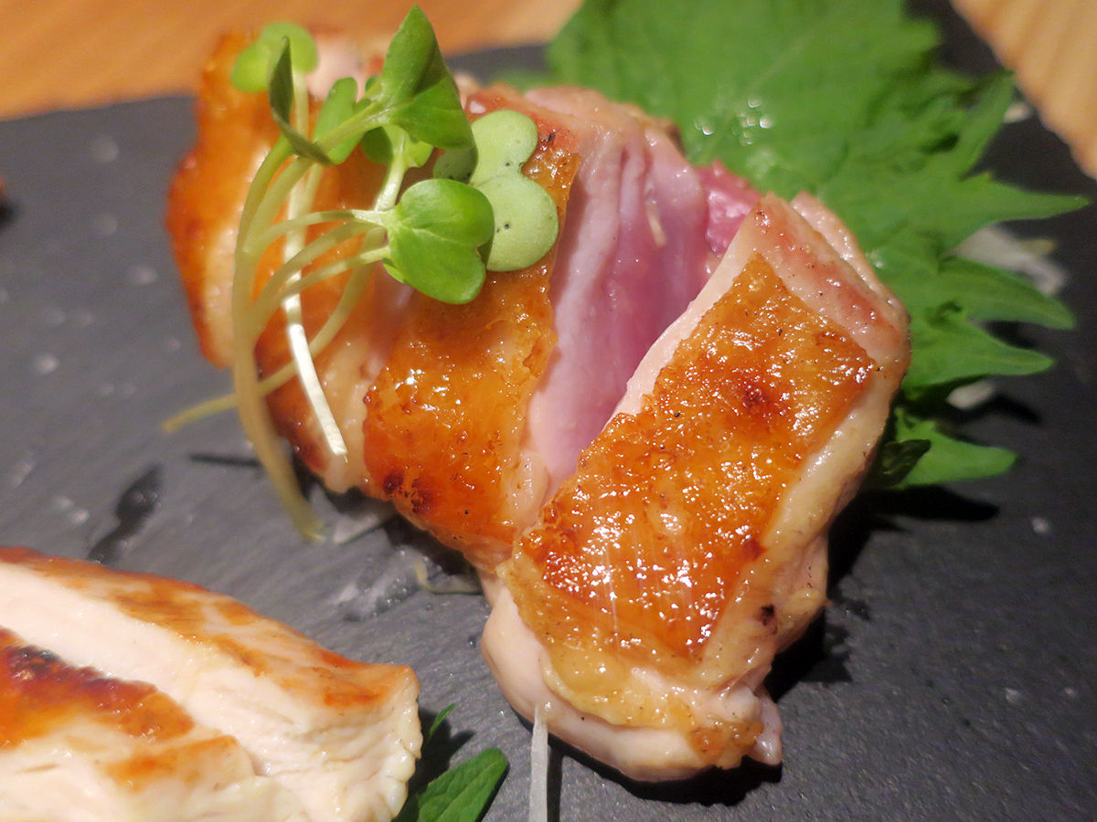 しっとりやわらかなむねに、レアでブリッブリなもも。どちらもおいしいけど、やっぱり皮好き脂好きの私はもも派。