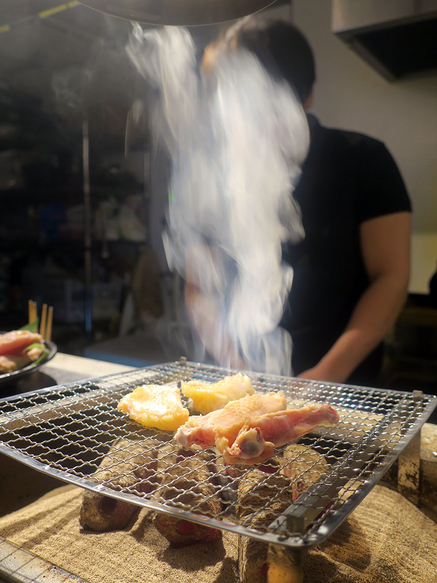 そしてカウンターゆえの特典。スタッフさんが焼いてくれる!焼肉スタイルセルフ焼きも楽しいけど、せっかくのおいしい肉、勝手知ったる方に焼いてもらった方が旨いに決まってる。至れり尽せり。そしてこの焼きの光景までもがアテになる。