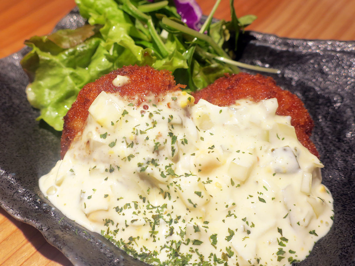 パサついてそうなイメージとは裏腹に、数種の部位を合わせることでめちゃくちゃジューシィで旨味がスゴイ!たっぷりの自家製タルタルもサラッとしていてクドくなくってカツとの相性抜群。