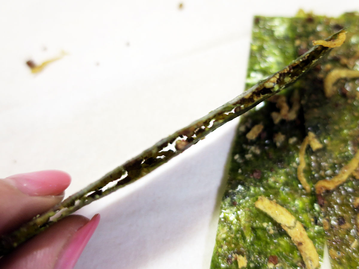 シンプルな海苔2枚でトムヤムクン味のフレークがサンドされたもの。韓国旅行の際にも似たようなの買ったっけ。これもおいしい。