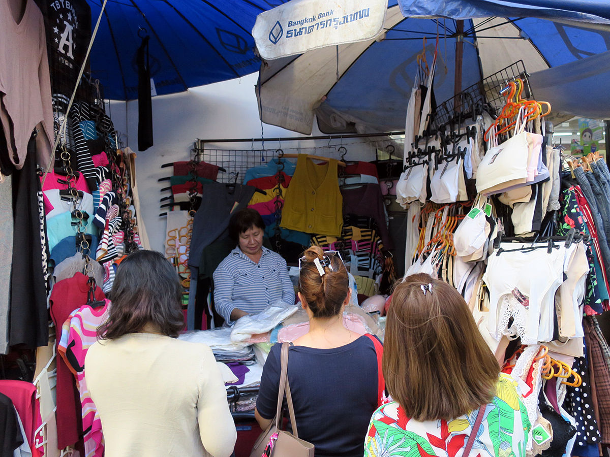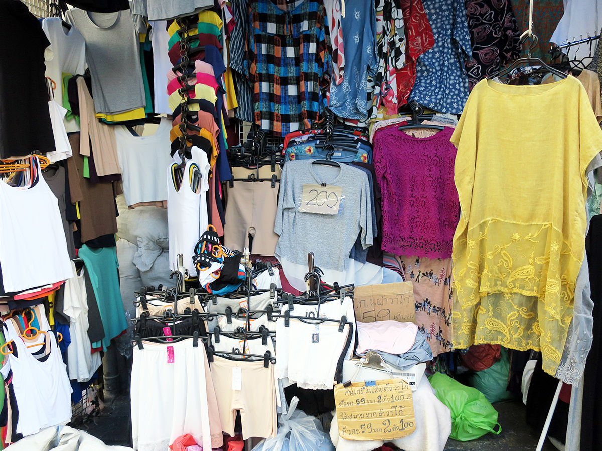 同じくバンコクの市場にて。衣類・靴・鞄などは製法が雑だったり破れていたりすることもあるので、しっかりチェックが必要!…まぁ、安いから仕方ないと諦めていれば別だけど(笑)