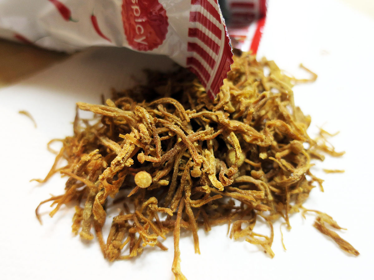 今回ゲットしたお土産の中でめちゃお気に入りがコチラ。キノコのスナック!初めて見かけてひと目惚れ!それぞれ、えのき・ヒラタケで、塩味・唐辛子・トムヤムクン(だと思う)の3フレーバー