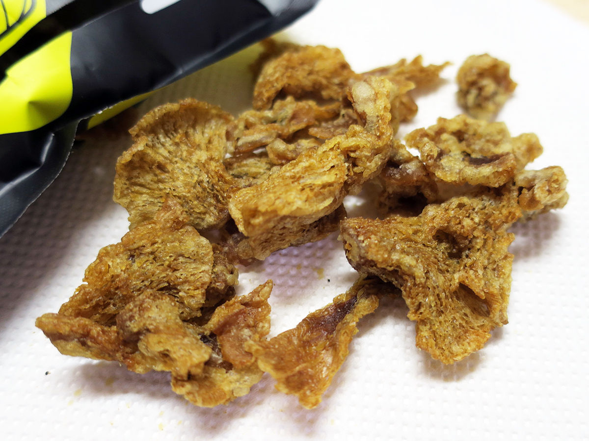 何味というしっかりとした味付けはなく、薄っすら塩気があるかな〜程度。鶏皮揚げたんの豚バージョンってとこ。これがなんせ美味しい。先のえのきスナック然り、食べだしたら止まらないヤツ。毎回「もっと買えば良かった!」と思うのだけど。なんせかさばるし、トランクに詰め込んだら割れちゃうしでなかなか大量購入できないもどかしさ><