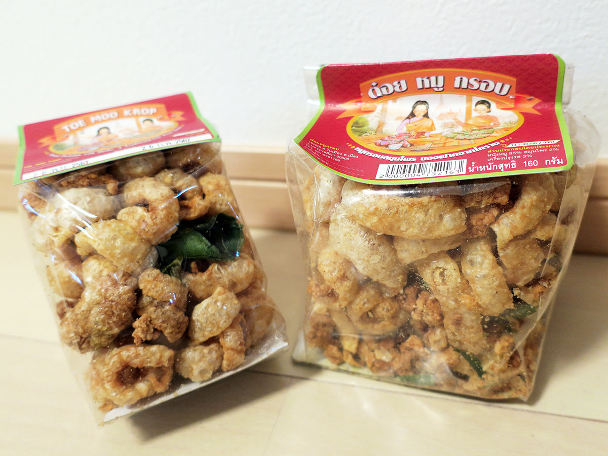 薄っぺらで軽くて安くて大量に買えるのが嬉しい。そしてもちろん美味しい。韓国海苔風なシンプルなものから、タイらしい辛いのん、トムヤムクン味などフレーバーも豊富。パリッパリで食べだしたら止まらない!これはおやつではなく酒の肴に。