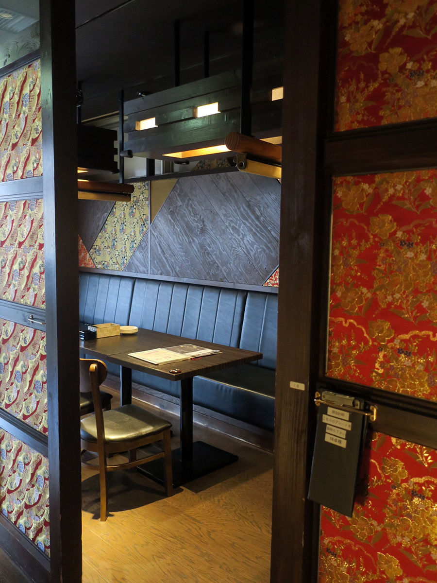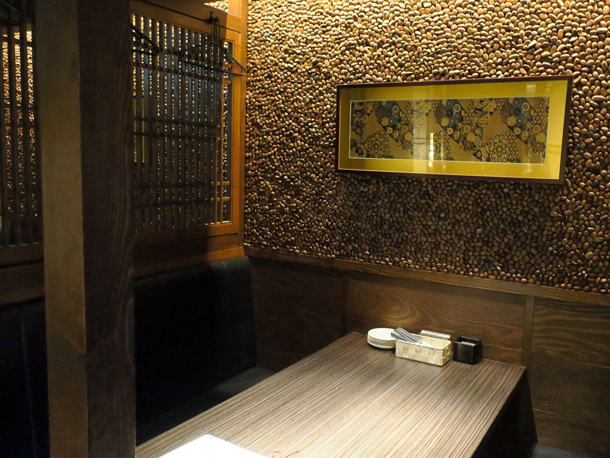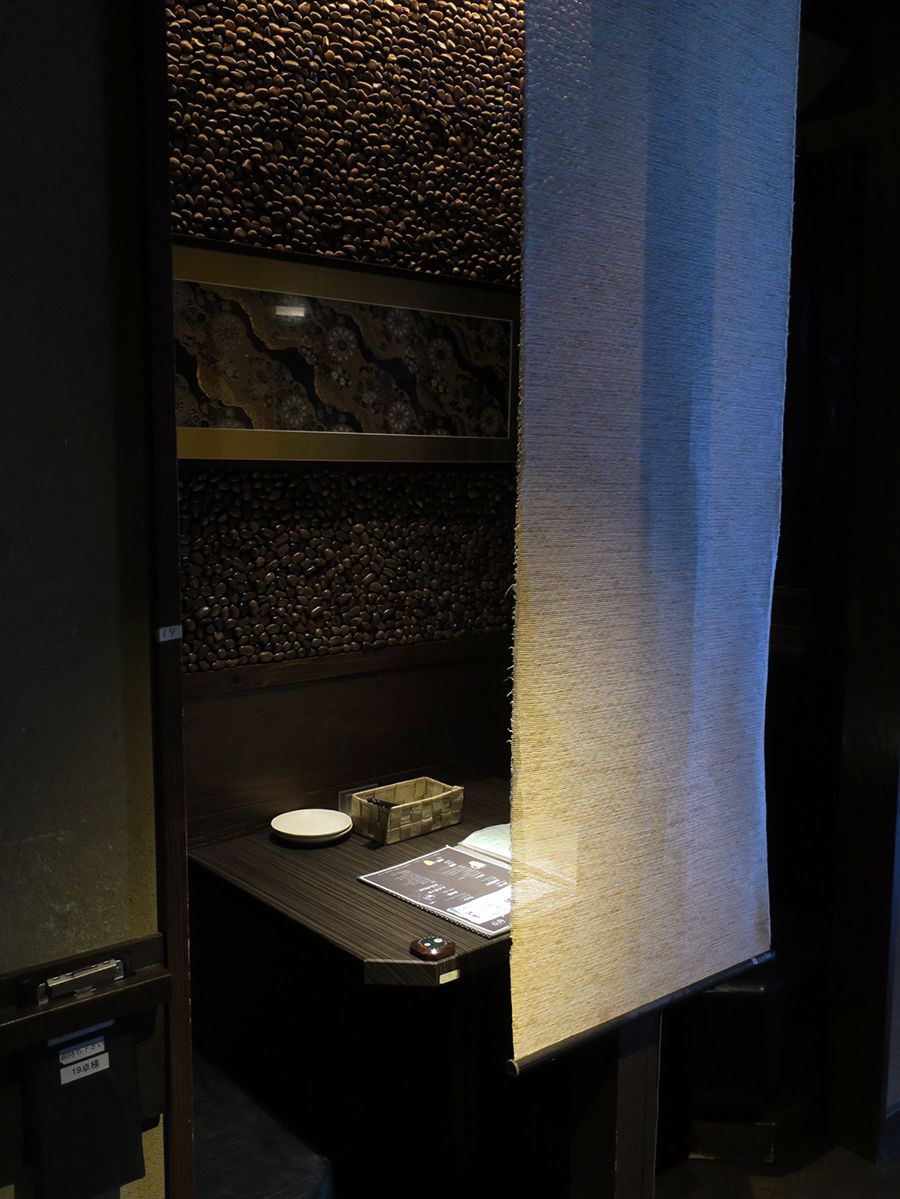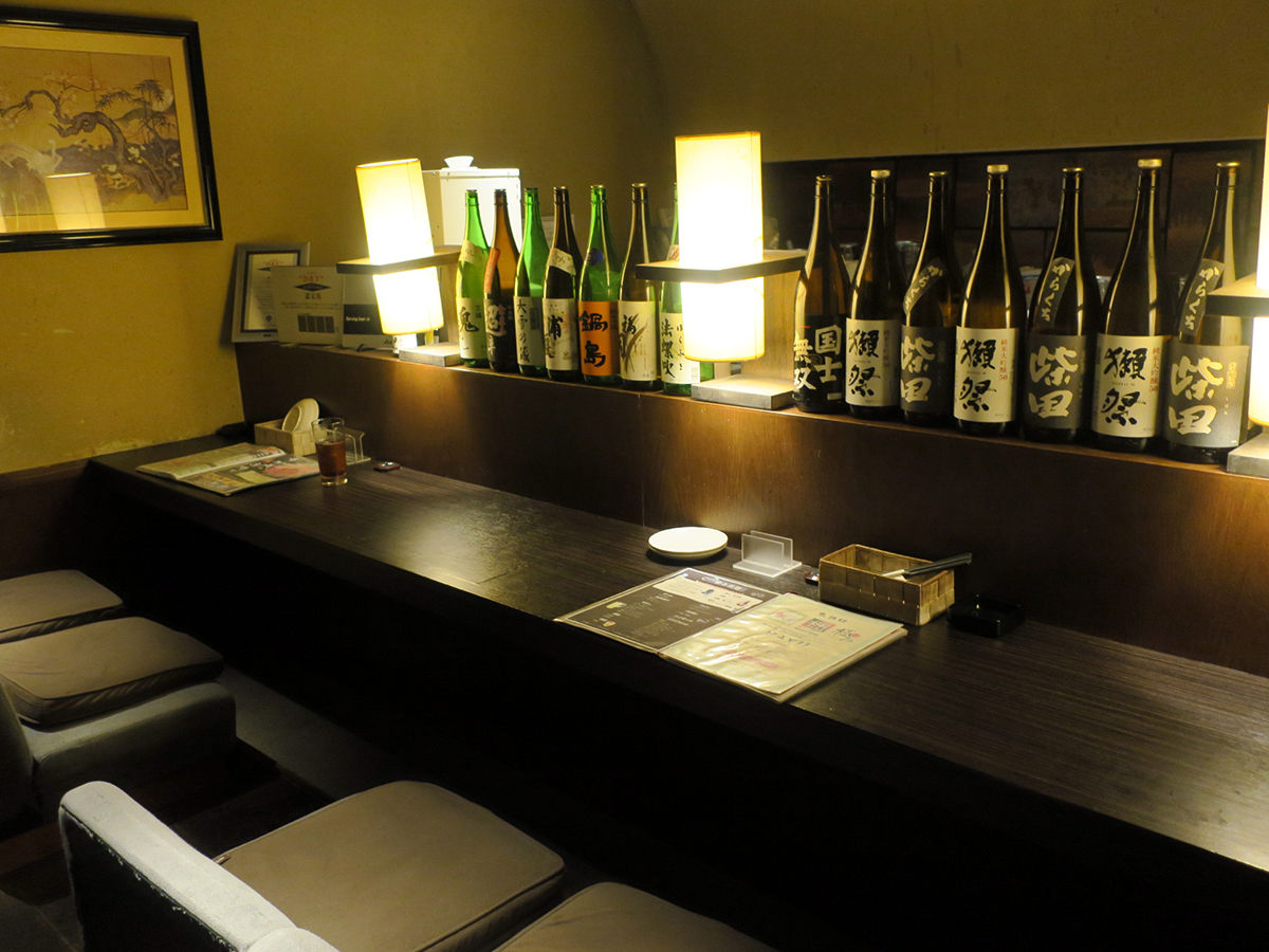 随所に見られる和なあしらいが素敵〜酒瓶が並ぶカップルシートも素敵〜