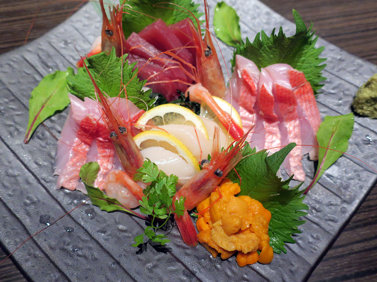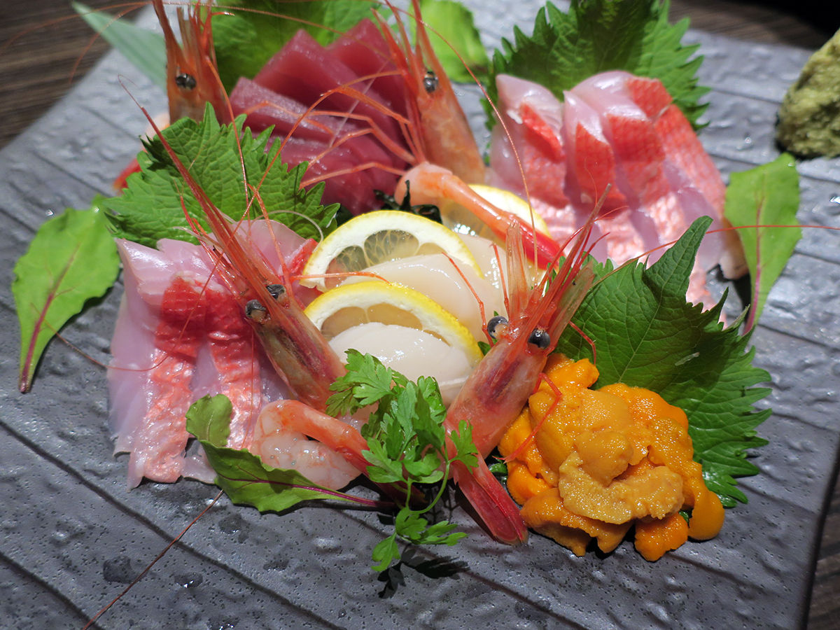 マグロ、金目鯛、ホタテ、甘エビ、ウニの豪華盛り!