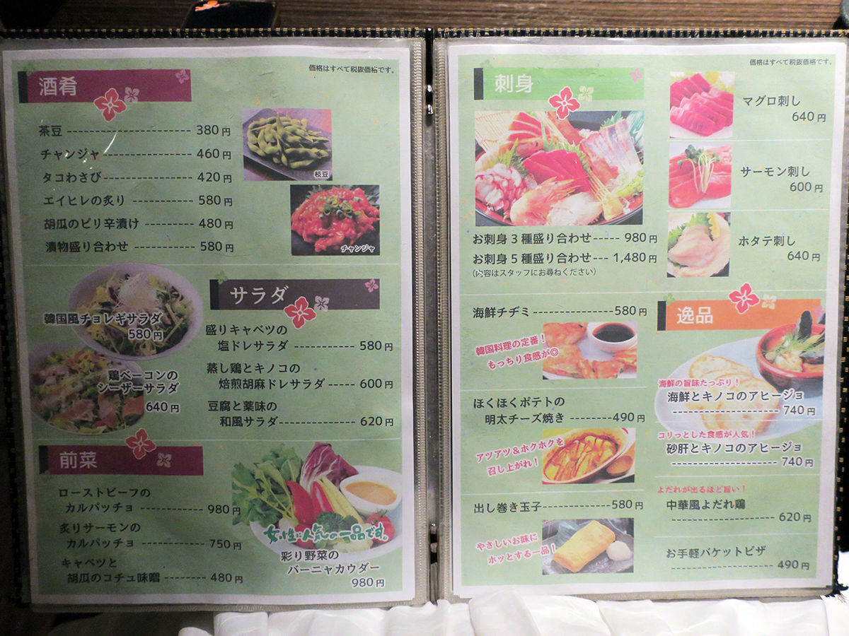 アラカルトの他、コースは¥3000〜、3時間飲み放題もありますよ。