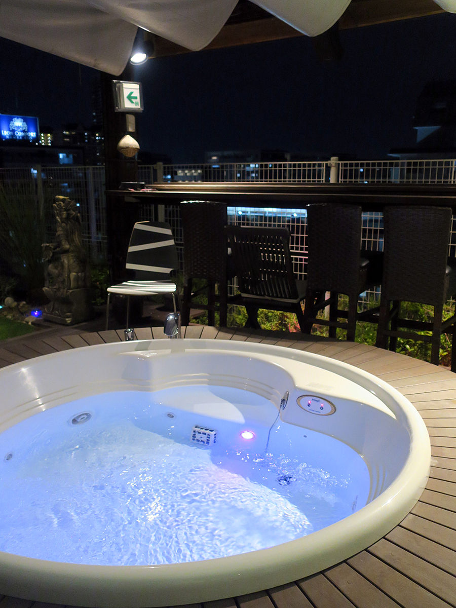 ジャグジーもあって足湯も楽しめるし、貸切時には水着着用で浸かることもできる!?
