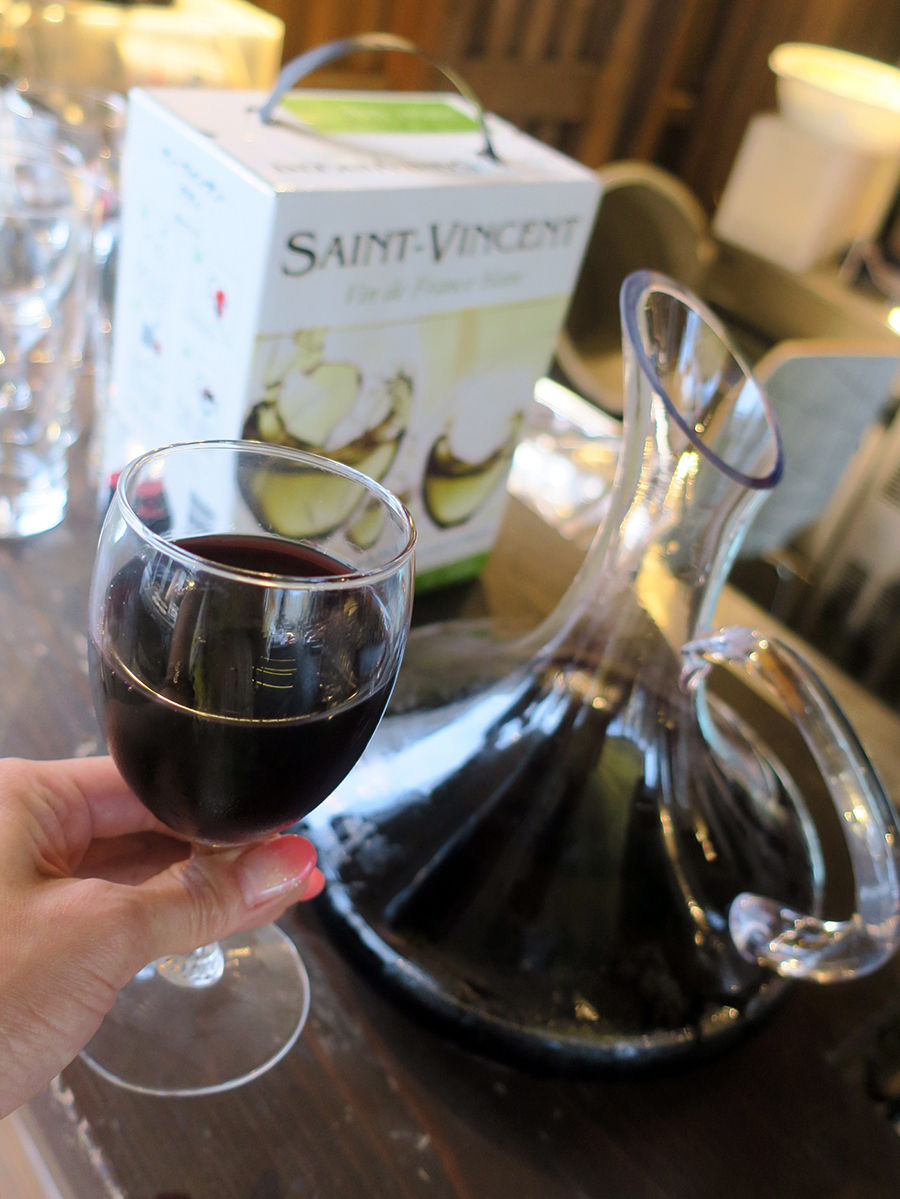 肉にはワイン。もちろんセルフで入れ放題。おっきなデキャンタ(と言うのか何と言うのか)がカワイイ。欲しい〜
