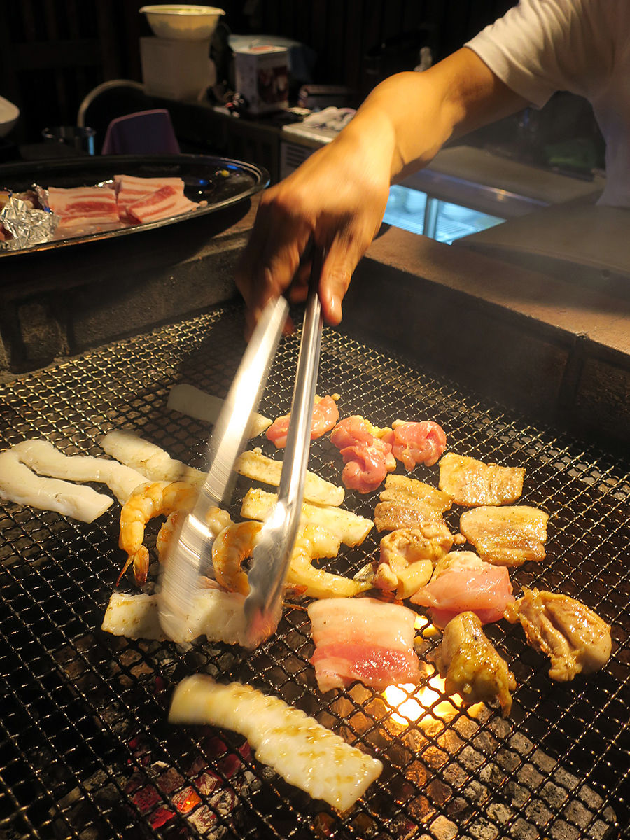 バーベキューも最初はスタッフさんが焼いてくれる。その後は自ら焼いてもOK。