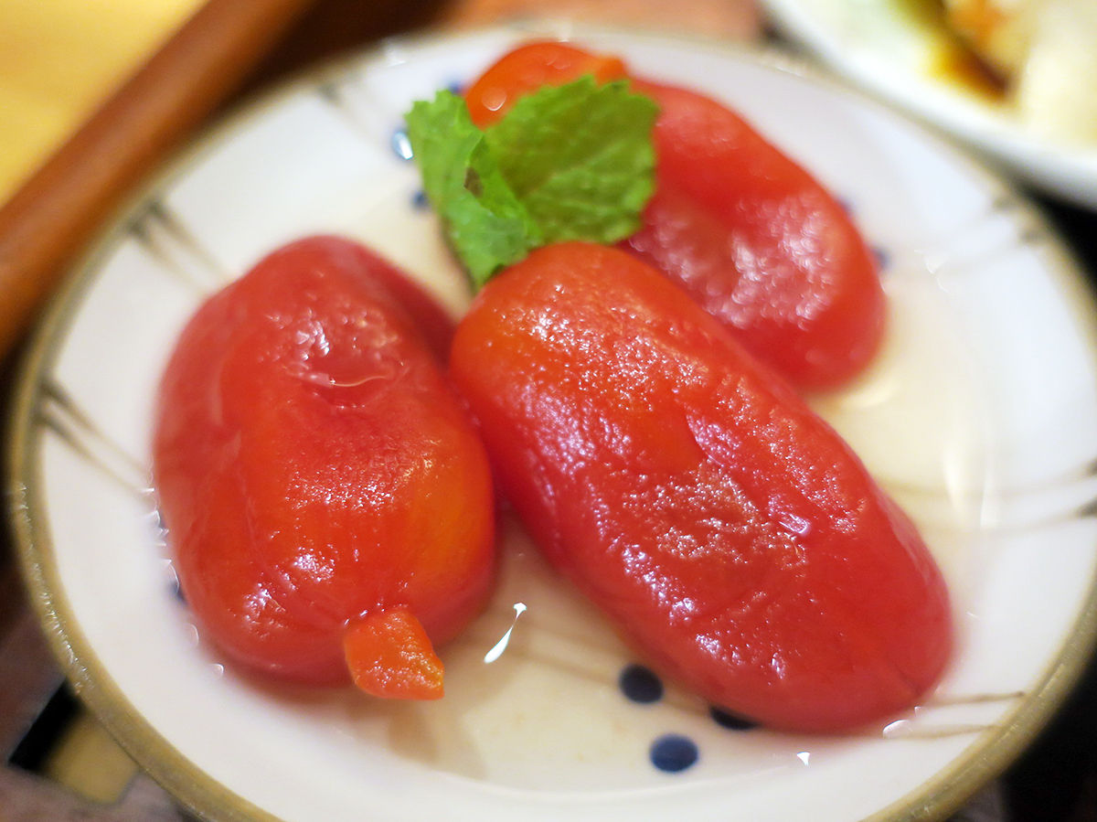 湯むきしたトマトがトロンっとやわらかで甘くってスイーツみたい!めっちゃおいしい。