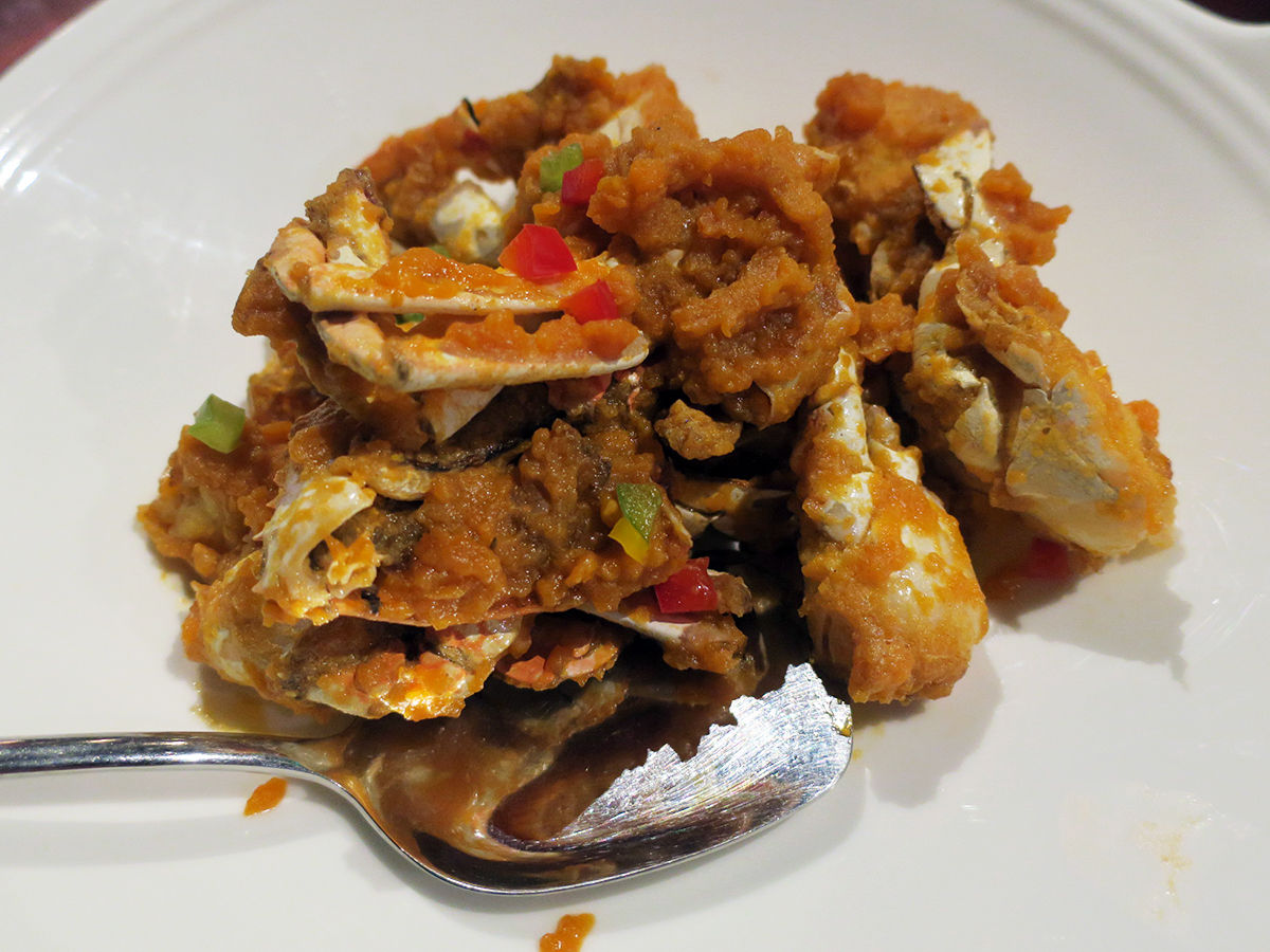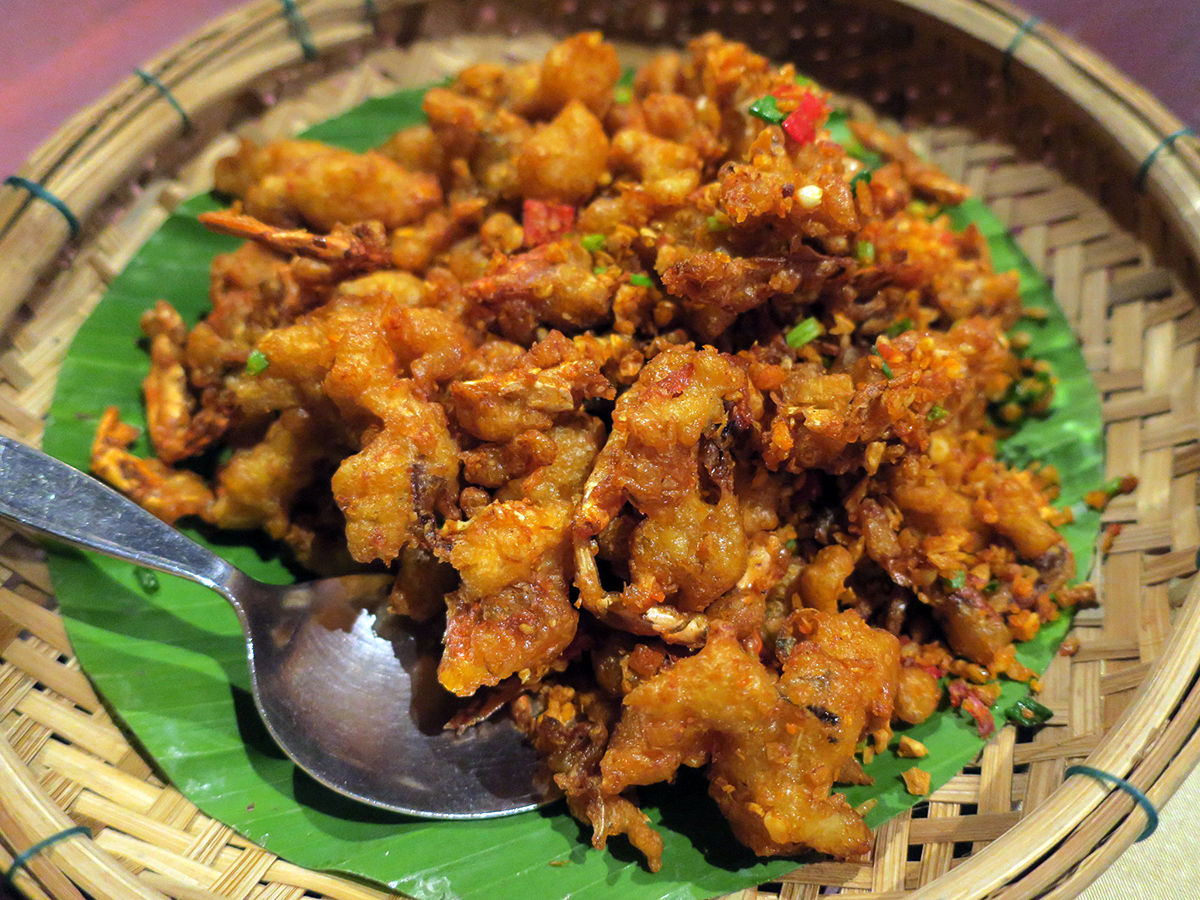 バンコクのちょっと良いレストランとかでも食べられる「プーパッポンカリー」、ソレのもっとローカルな感じ。外国人にも食べやすくアレンジされたソレのようなマイルドさはなく、ガツンと旨辛!殻ごとしゃぶりついてチューチュー吸う。