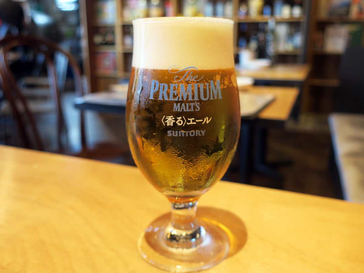 プレミアムモルツ香るエール¥590、付き出し¥390