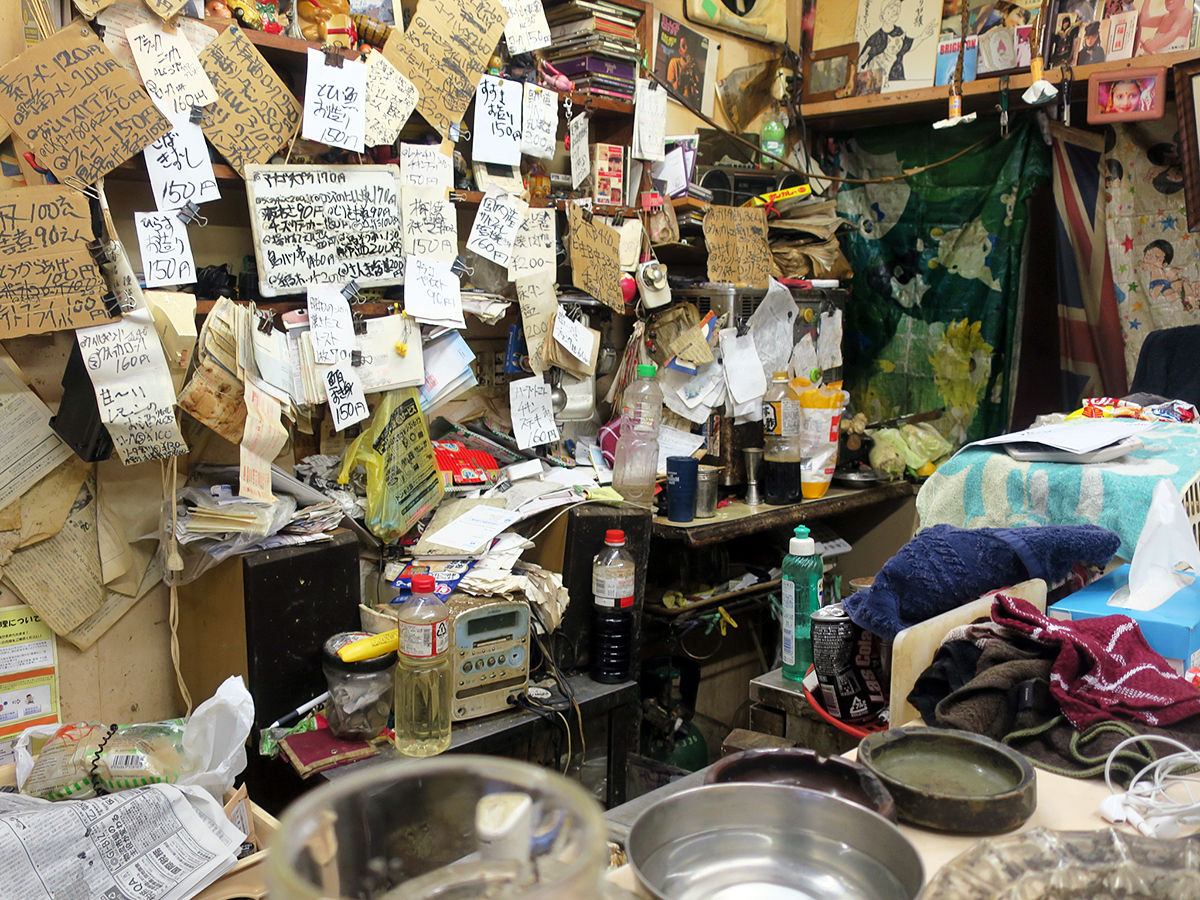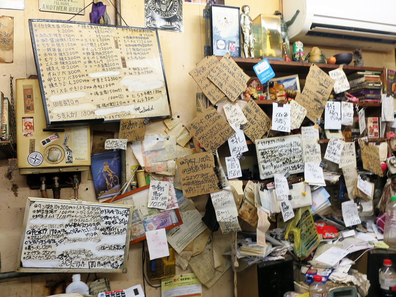 そうして入った店内の相変わらずのカオスっぷり!(笑)4〜5人?6人?ほどが座れる短いカウンターに、背後の小さなテーブル席。一体、何人ほど集客できるのだろう?