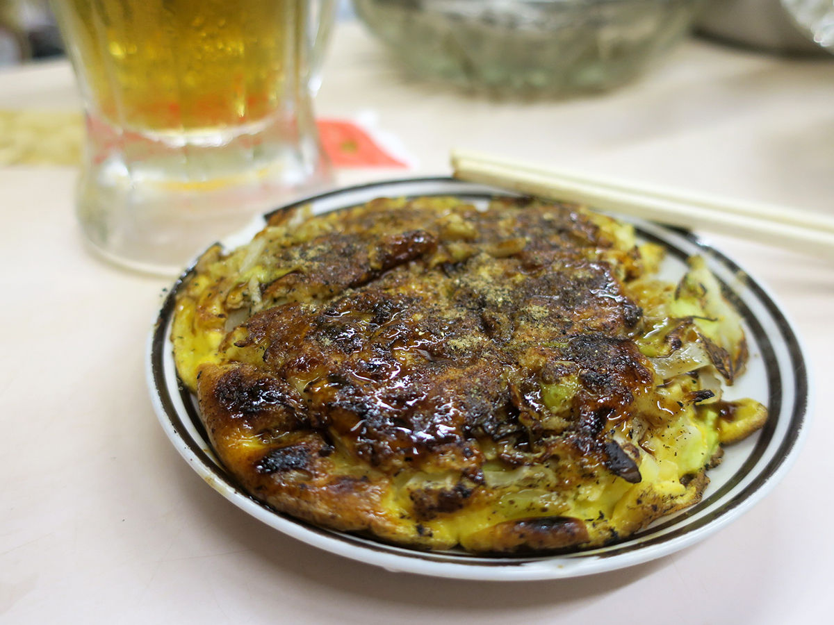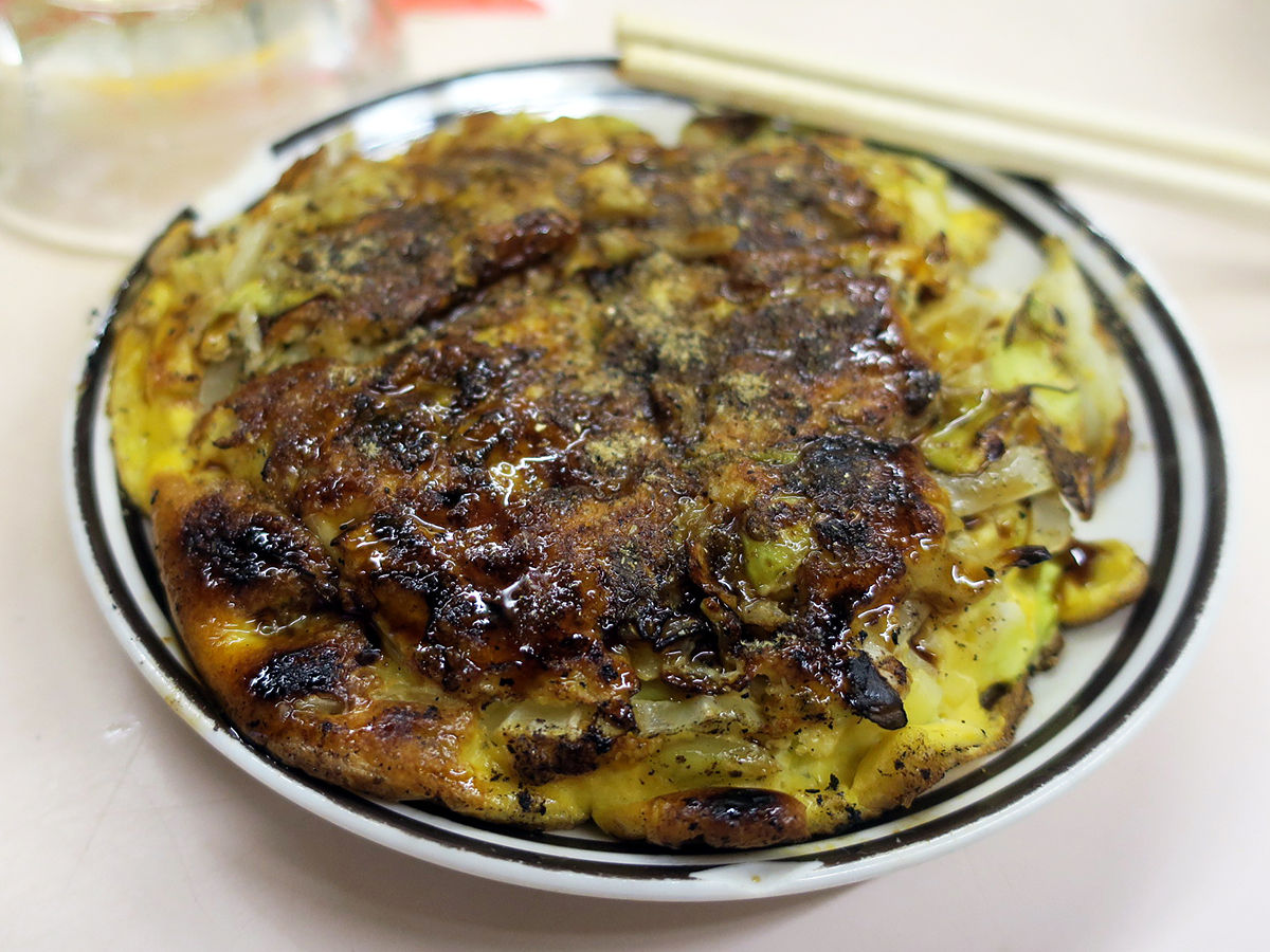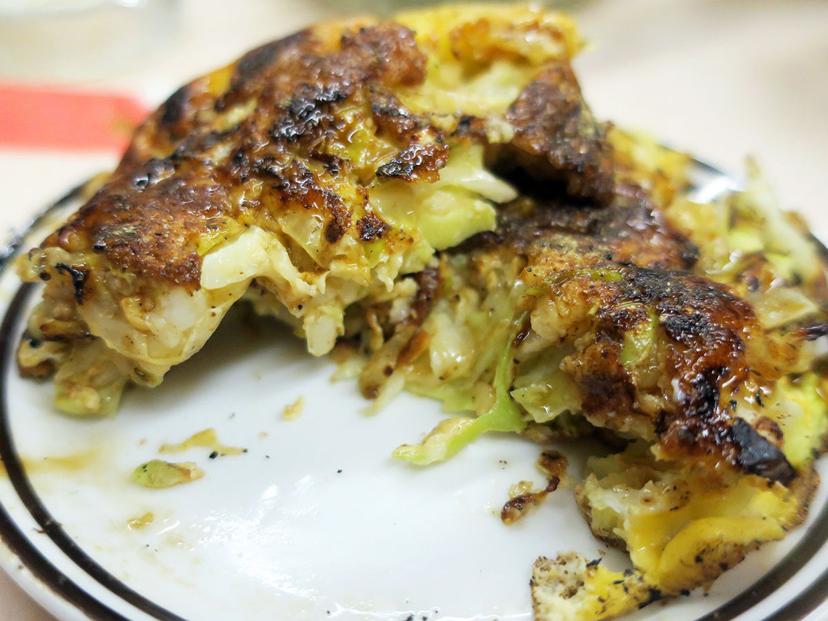 卵と山芋ベースの生地にキャベツたっぷり。外こんがり中はちょっとトロッとしててちゃんとおいしい(笑)小皿サイズながら結構食べ応えもある。