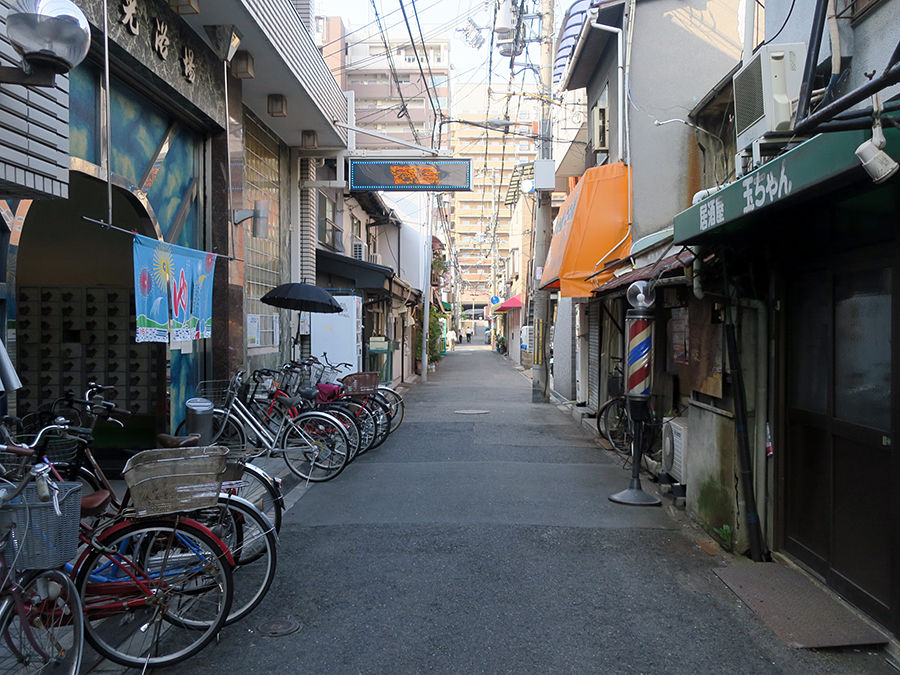 動物園前駅から徒歩5分ほど、フツーの住宅街の一角。お風呂屋さんの近く、オレンジテントが目印。